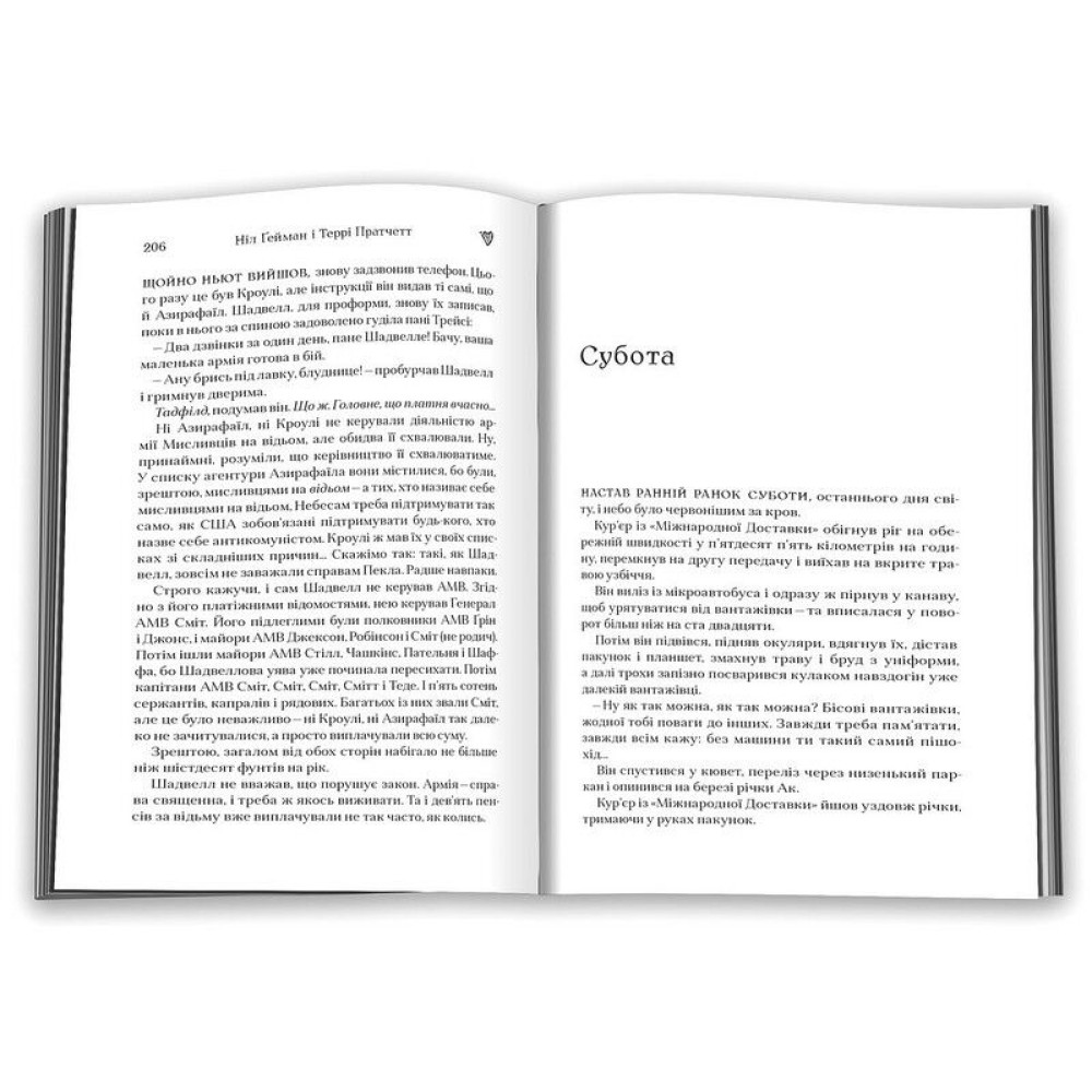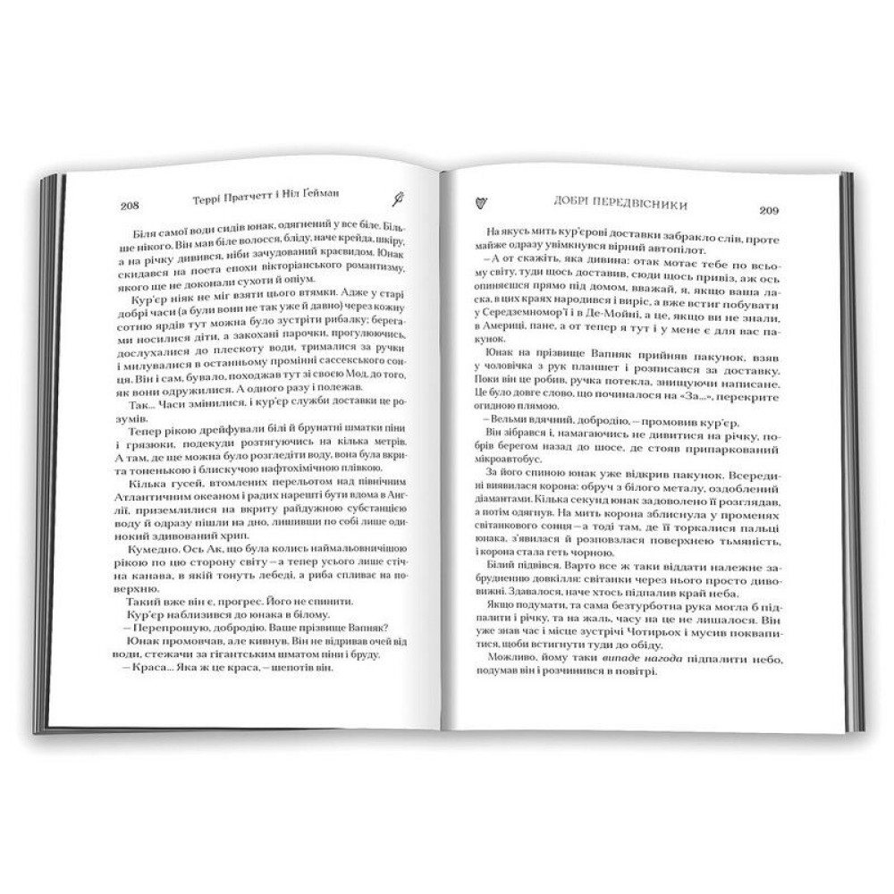 Як каже нам книга "Вичерпних та ґрунтовних пророцтв Агнеси Оглашенної" (а цій книзі треба вірити, бо це єдина у світі книга пророцтв, що справджуються), кінець світу прийде в суботу. Якщо точніше, то оцієї суботи, що на наступному тижні. Якраз перед вечерею. Добро та Зло збирають армії, жаби проливаються дощем, Атлантида піднімається з морських глибин… Усе було б згідно із задумом Божим, якби не двійко незвичайних союзників: вибагливий янгол-букініст та стильний демон-авантюрист. Обидва живуть серед смертних від Самого Початку, і таке життя їм вельми до вподоби - тож вони не горять бажанням попрощатися із таким звичним світом. А ще, здається, хтось загубив Антихриста. . .Неймовірно веселий фантастичний роман, створений завдяки співпраці авторів-бестселерів міжнародного рівня Нілом Ґейманом і Террі Пратчеттом!31 травня світ чекає екранізація книги "Добрі передвісники" - серіал за участі таких акторів як Майкл Шін і Девід Теннант!