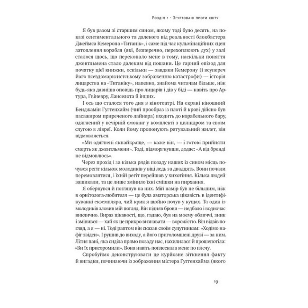 Що означає бути чоловіком сьогодні? Звідки беруться справжні герої? Як їм вдається приходити саме тоді, коли вони найбільше потрібні? Бред Майнер відповідає на ці питання та запрошує відкрити найкращу модель мужності — джентльмена. У своїй книжці автор викладає тисячолітню історію цього забутого ідеалу та висуває вагомі аргументи для його сучасного відродження. Досконалий джентльмен Майнера — це воїн, коханець і монах. Він має бойовий дух для захисту рідного, істинного та прекрасного, дотримується етичного кодексу та своїх зобов’язань, з повагою ставиться до інших, не боїться ризикувати, вміє бути винахідливим і дотепним, проактивний у відносинах зі своєю леді і водночас цінує самотність, завжди готовий до навчання.