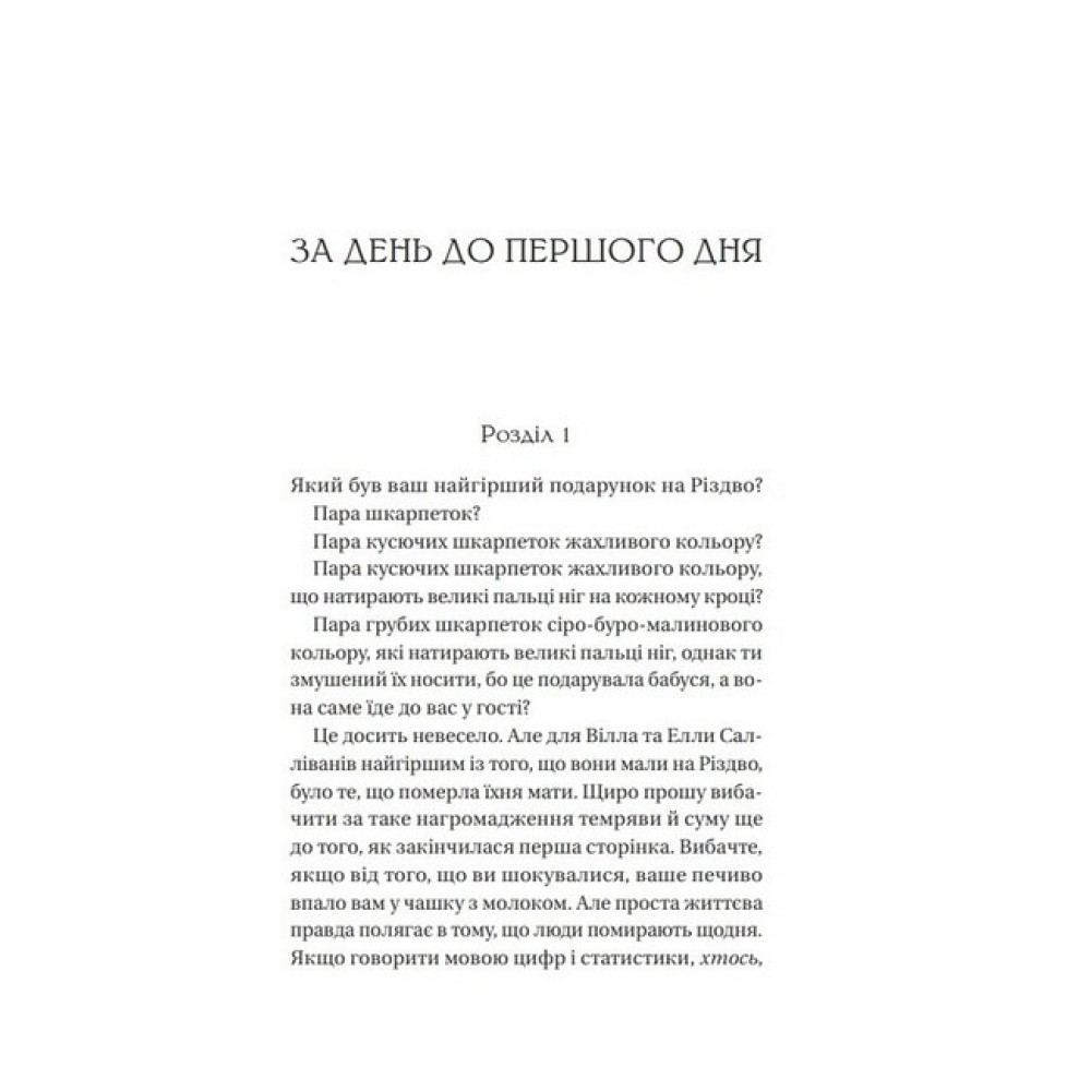 | Автор | Тед Сафран, Джеймс Паттерсон Рік 2023 Мова Українська Жанр Сучасна проза, Роман270 ?2 людини Все про “Дванадцять шалених днів Різдва” Від видавця Ні чобітка для подарунків, ні самих подарунків, ні гірлянди, ні ялинки — невже скасували Різдво? Надворі середина грудня, і вже п’ятий рік поспіль у домі родини Салліванів у Гарлемі немає жодної ознаки наближення новорічних свят. Але цього року хтось таємничий надсилає подарунки вдівцю Генрі Саллівану та його двом дітям, Віллу та Еллі. Спочатку з-поміж гілок груші висовує голову маленьке дзьобисте та пір’ясте створіння. Не встигли вони оговтатися, як будинок Салліванів швидко наповнився галасливими тваринами та гостями, які вимагали їхньої уваги. Наступні дванадцять днів перевертають життя сім’ї Салліванів із ніг на голову так, як годі було й уявити. І хоча це Різдво буде безладним, що, як саме такого подарунку вони всі потребують? Рецензії 0 Всі характеристики ВидавництвоVivat |