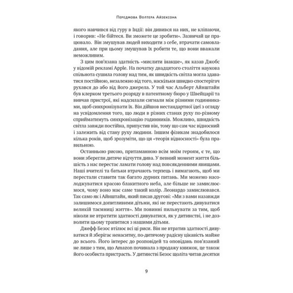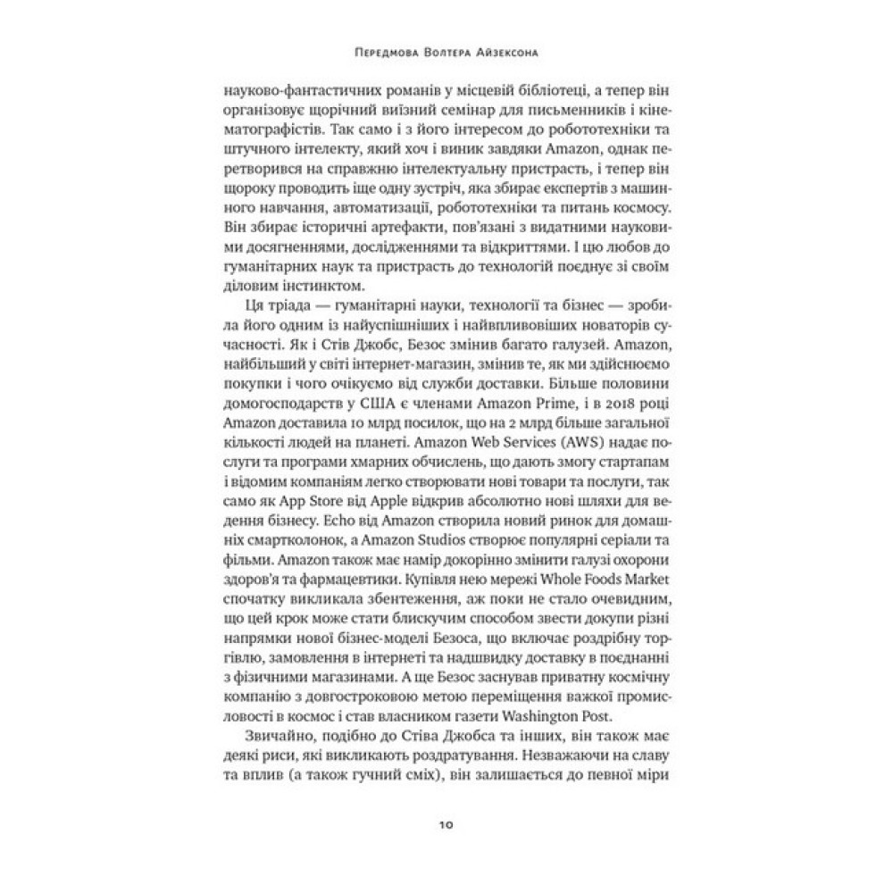 Автор | Волтер Айзексон, Джефф Безос Рік 2024 Мова Українська Жанр Саморозвиток, особисте зростання, Збірник390 ? КупитиВсе про “Джефф Безос. Винайди і віднайди. Вибрані тексти засновника Amazon” Від видавця За словами самого Джеффа Безоса, у цій книжці викладені основні принципи й філософія, якими він керувався під час задуму, створення та керування Amazon і Blue Origin.Завдяки цій збірці творів Джеффа Безоса — його унікальних і дивовижно оригінальних щорічних листів до акціонерів, а також численних промов та інтерв’ю, які дають уявлення про його минуле, його діяльність та еволюцію його ідей, — ви дізнаєтесь, чому і як він досяг успіху. Охоплюючи низку тем у бізнесі та державній політиці, від інновацій та одержимості клієнтами до зміни клімату й космосу, це видання дає рідкісне уявлення про те, що Безос думає про світ і про те, куди нас може завести майбутнє.Книжка написана у прямолінійному й приземленому стилі, пропонує читачам майстер-клас із бізнес-цінностей, стратегії і реалізації:-важливість мислення першого дня;-чому «вся річ у довгостроковій перспективі»;-що насправді означає бути одержимим клієнтом;-як почати новий бізнес і забезпечити значне органічне зростання вже успішної компанії;-чому культура є імперативом;-як готовність до невдачі тісно пов’язана з інноваціями;-чого нас навчила пандемія Covid-19.Кожне осяяння пропонує нові способи осмислення викликів сьогодення — і, що важливіше, майбутнього — та нескінченної нагальності прагнення вперед, ніколи не зупиняючись на досягнутому. Кожен, починаючи від генеральних директорів зі списку Fortune 100 і закінчуючи підприємцями, які тільки відкривають магазин, і мільйонами людей, які користуються продуктами й послугами Amazon у своїх домівках чи на підприємствах, зрозуміє принципи, які сприяли успіху одного з найважливіших інноваторів нашого часу. Рецензії 0 Всі характеристики ВидавництвоНаш Формат |