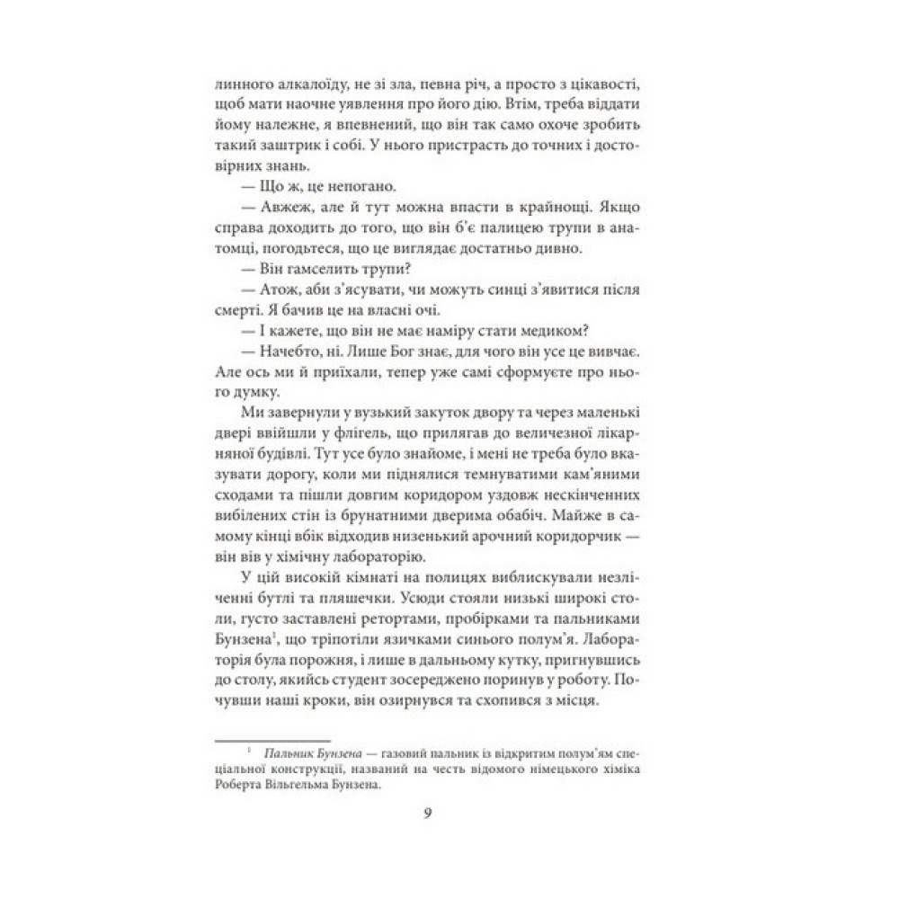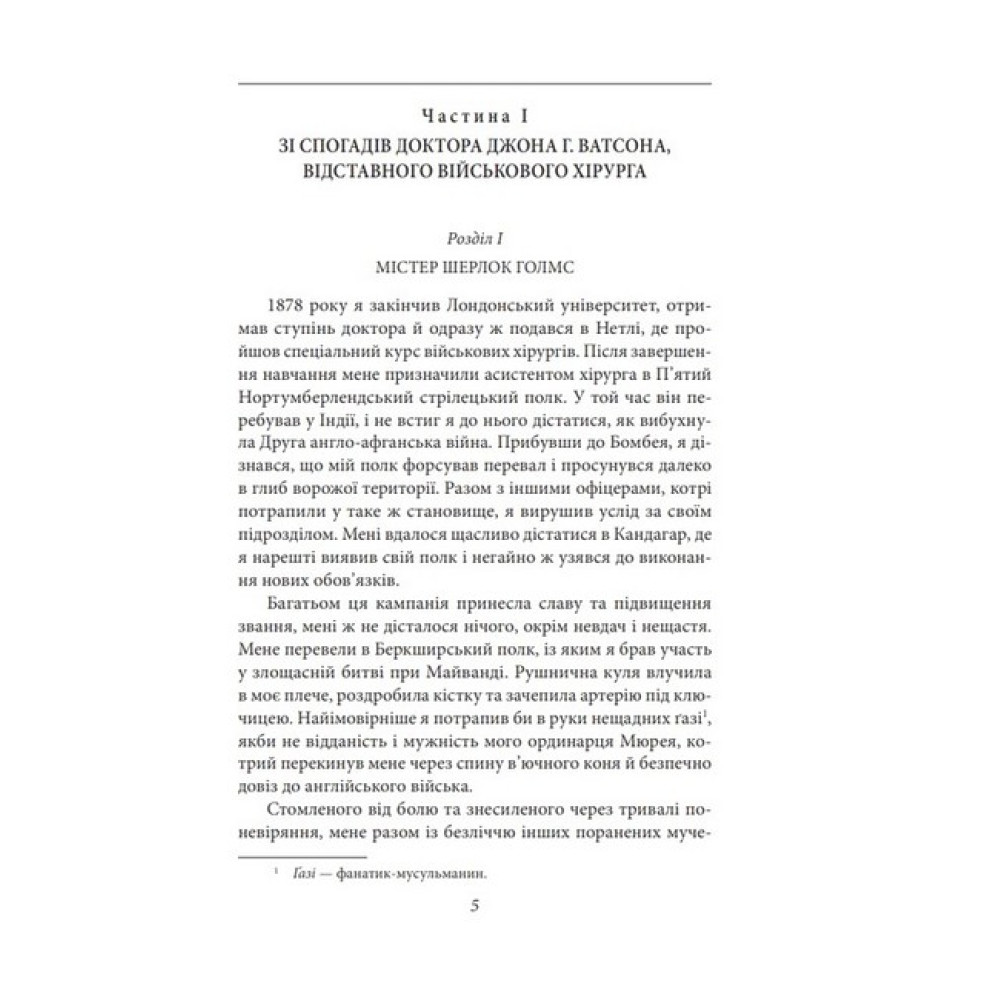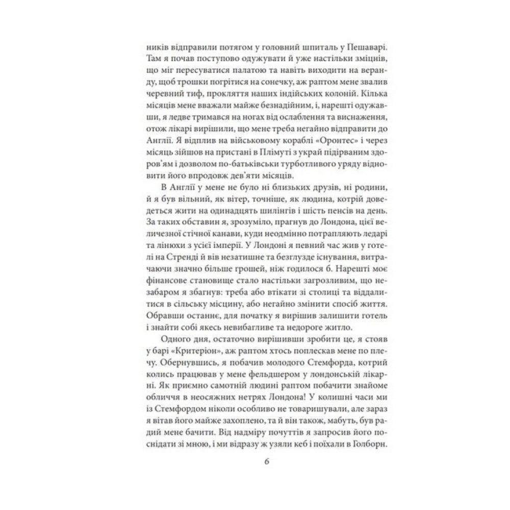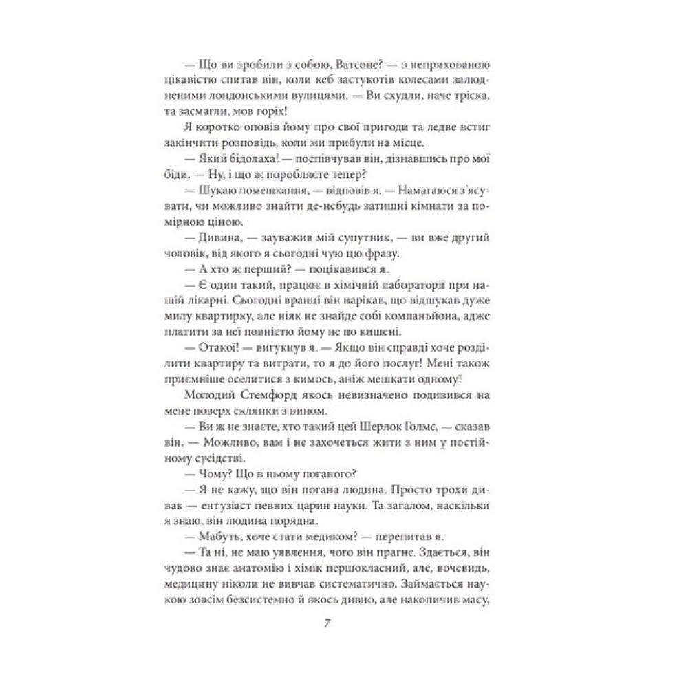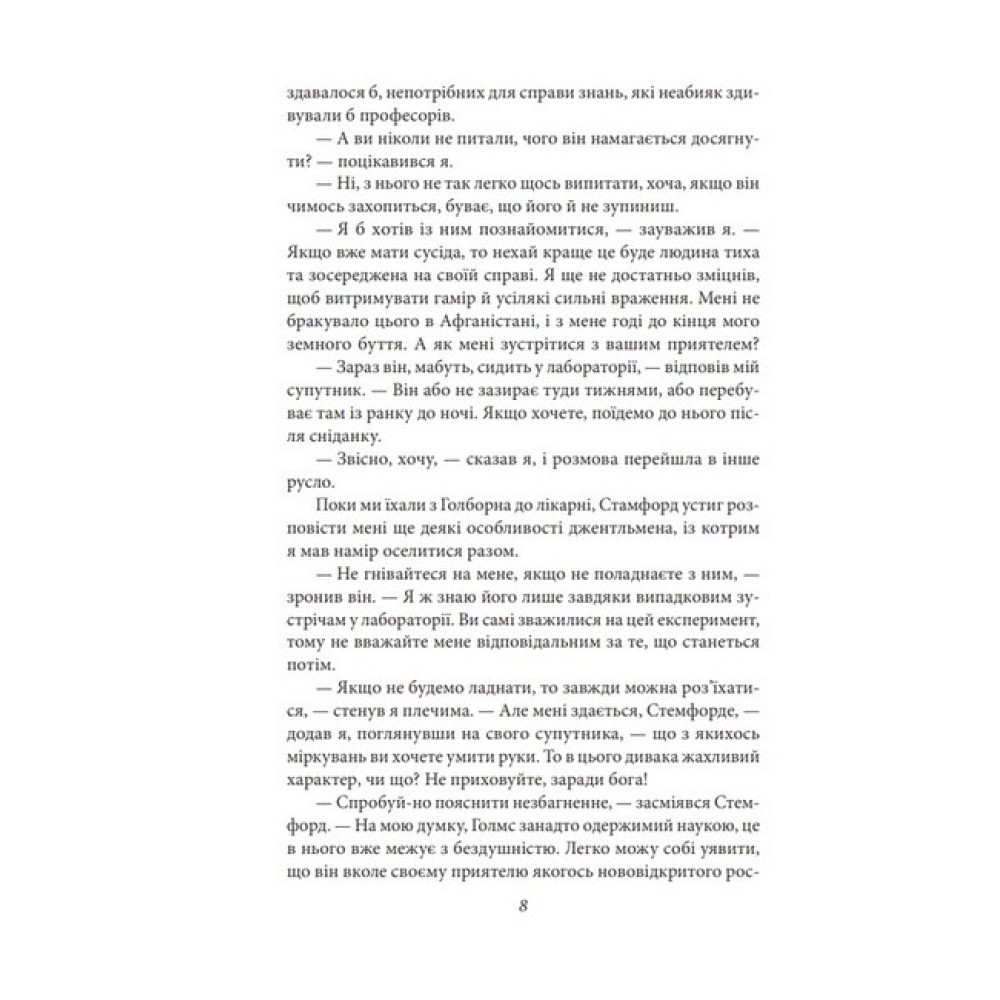 Сер Артур Ігнатіус Конан Дойл (1859—1930) — англійський лікар і письменник, ім’я якого нерозривно пов’язане із легендарним літературним героєм — сищиком Шерлоком Голмсом, який володіє дедуктивним методом не гірше, ніж смичком улюбленої скрипки. «Родзинкою» «самітника із Бейкер-стрит», який не знає собі рівних в умінні розплутати найскладніший злочин, стали інтелектуальність, іронічність і духовний аристократизм. Характери Шерлока Голмса та його приятеля доктора Ватсона були показані настільки яскраво, що здавалися реальними. А згодом на скромній лондонській вулиці Бейкер-стрит з’явився будинок Шерлока Голмса, який щороку приймає мільйони відвідувачів з усього світу. Сам же Голмс увійшов до Книги рекордів Гіннеса як найбільш екранізований літературний персонаж. Повість «Етюд у багряних тонах» (1887) відкриває цикл творів про знаменитого сищика Шерлока Голмса та його компаньйона доктора Ватсона — це жаліслива історія кохання і помсти, що завершилася кількома вбивствами у Лондоні, які завели у глухий кут поліцію. У повісті «Знак чотирьох» (1890) Голмс і Ватсон займаються розслідуванням справи бідної дівчини Мері Морстен, яка раптом виявилася багатою спадкоємицею, однак ненадовго.
