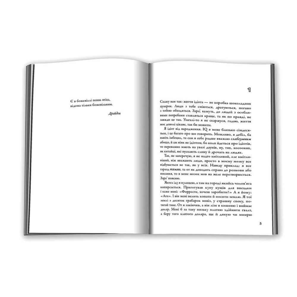 Смійтеся, плачте, вставайте і підбадьорюйте: Форрест Гамп - це історія кожної людини, марення кожного. Дивовижно тепла, жорстоко колюча і дотепна "казка, яку розповідає ідіот", з-під гострого пера сучасного чарівника.Здоровань з IQ, що не перевищує 70, Форрест Гамп - дуже милий і на диво кмітливий персонаж кумедної повісті, що давно вже стала класикою. Нехай ранні роки його складалися не вельми вдало, та щойно він опинився у футбольній команді Університету Алабами, як став справжньою зіркою, і це цілковито змінило його життя. Він устиг побувати героєм в'єтнамської війни й видатним гравцем у пінг-понг, та якщо вам і цього замало, повірте, Форресту Гампу ще багато чого є розповісти!