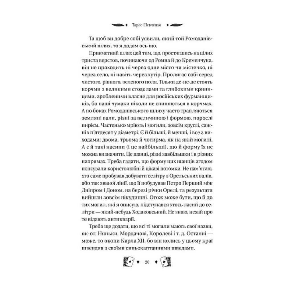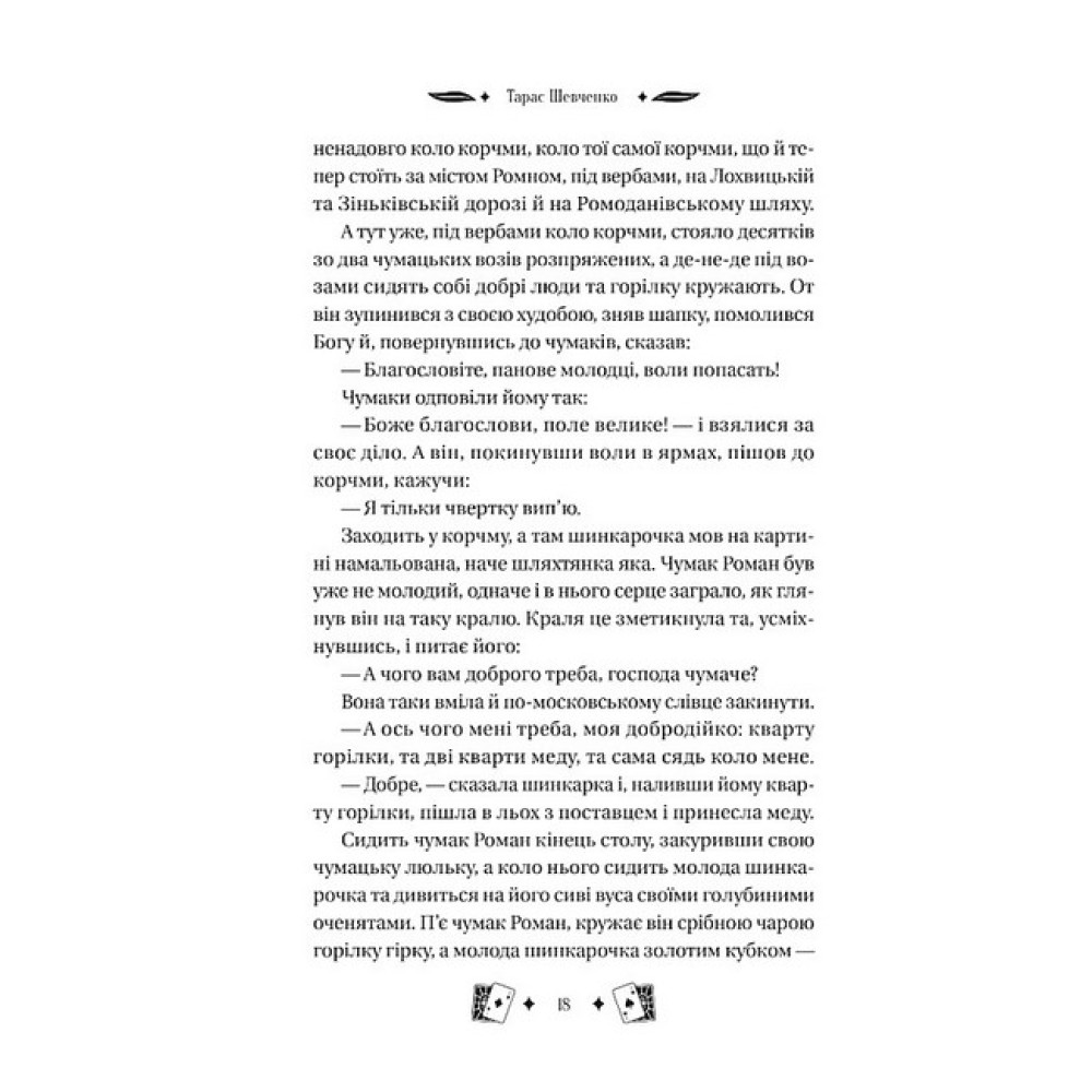 Зворушлива історія наймички, яка до кінця життя не могла зізнатися у своєму материнстві, відверта сповідь колишнього каторжника Кирила, моторошні сільські бувальщини та драматична доля княгині Катрусі — три перші Шевченкові повісті поновому розкривають нам світ людини першої половини ХІХ століття, її переживання, змагання, мрії та розчарування. Блискучі переклади українською мовою знаних майстрів слова Бориса Антоненка-Давидовича й Віктора Сапіцького ніби наближають Шевченка до нашого часу: його герої та героїні живуть, кохають, страждають і борються, як ми сьогодні.