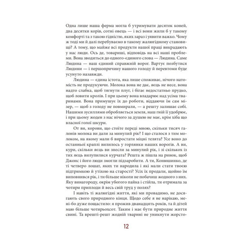 Джордж Орвелл раніше від інших позбувся ілюзій щодо місії Радянської держави. «Колгосп тварин» — це алегорія на революцію 1917 року і наступні події в СРСР до розгортання сталінізму. У передмові до першого українського видання (1947 року) Орвелл зазначав, що для нього дуже важливо, щоб люди на Заході побачили радянський режим таким, яким він є.За сюжетом тварини на фермі повстали проти фермера Джонса і створили незалежний «Колгосп тварин». Але, захопивши владу, лідери повстання одразу забули про задекларовані правила майбутнього щасливого життя. В алегоричній формі зображено переродження революційних принципів і програм, поступовий перехід від утопічних ідей загальної рівності до диктатури і тоталітаризму.
