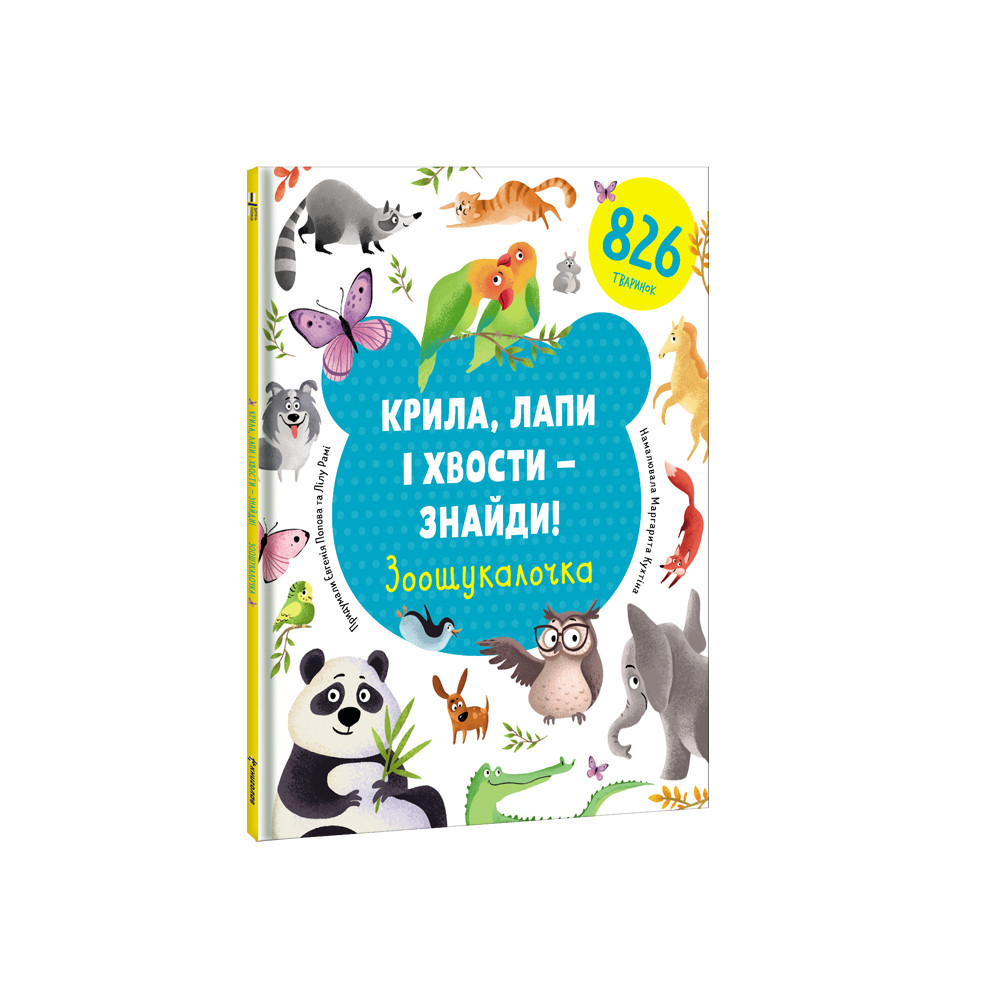 Усе про книжку Крила, лапи і хвости – знайди! Зоошукалочка: Про книжку Ця барвиста книжка-гра – чудовий варіант для розглядання, усміхання та приємного дозвілля з дітками. Водночас вона корисна для їх саморозвитку – розвиває логічне мислення та навичку бути уважними і спостережливими.А ще – це один зі спосіб дізнатись більше про світ тварин. У цьому яскравому виданні читачам потрібно знайти відповіді на запитання про кумедних звіряток та виконувати захоплюючі завдання. Зокрема, віднайти найпухнастіших чи всіх смугастих котів, найменших песиків, сплячих єнотів, панду, яка святкує День народження, слоників, які купаються, сумного крокодила, вовків, які виють і зайчиків, які злякались, найхитріших лисичок і сову в окулярах, усіх рожевих метеликів і ще багато інших тваринок. З цією зоошукалочкою гарний настрій гарантовано всій сім’ї!