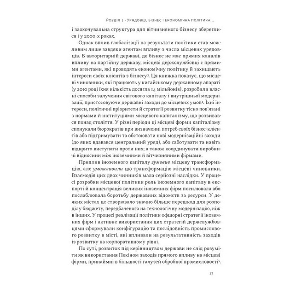 Чи замислювалися ви, як одна з найстаріших цивілізацій світу адаптувалася до глобалізованого ринку? У цій книжці Лін Чень досліджує, що зумовило такі трансформації й чим економічна політика Китаю відрізняється від інших.Авторка виходить за межі звичайного аналізу. Вона описує перехід від виробництва дешевих товарів до високих технологій, глибоко занурюється в політичні стратегії, економічні інтриги і взаємодії держави та бізнесу в одному з найдинамічніших ринків світу. Лін Чень розкриває, як китайські чиновники впливають на глобальні процеси, змінюючи правила гри на міжнародному ринку.В основі цієї книжки — не просто аргументи авторки, а висновки після 270 детальних інтерв’ю з держслужбовцями та власниками бізнесів, низки опитувань і досліджень, багаторівневих даних зі 159 міст і 6740 приватних фірм з виробництва електроніки.Лін Чень — доцент Школи передових міжнародних досліджень Університету Джона Гопкінса. У 2022 році отримала премію Американської асоціації політичних наук за найкращу порівняльну політичну роботу. Публікується в низці академічних видань, а також у Washington Post і Axios.