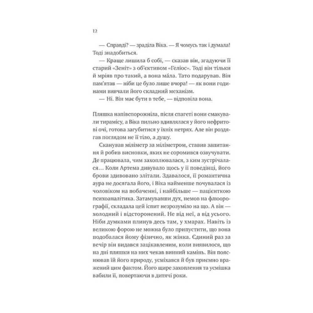 Як це — любити Привида? Чоловіка, про якого ти нічого не знаєш? Придуманий образ, а не реальну людину?Легенду, що постала за найтемніших часів?Артем, військовий льотчик і пілот-ас, із часом почав відходити в тінь — навколо дедалі більше молодих пілотів, тож треба вигризати своє місце під сонцем. Вікторія на початку повномасштабного вторгнення опинилася у Ніцці й стала збирати гроші на допомогу ЗСУ. У неї не дуже складаються стосунки з нинішнім коханцем, тож вона відновлює спілкування з хлопцем, у якого закохалася у юності. Він просить її про допомогу в дуже делікатній справі. Крістіна — журналістка французького глянцевого видання, що пише про легендарного Привида, який захищає українське небо. Ці матеріали розлітаються як гарячі пиріжки, і, щоб не писати навмання, вона відновлює спілкування зі знайомим пілотом винищувача. Що поєднує цих людей? Як переплетено їхні долі?Роман «Любити Привида» — це пристрасна історія, любовнийтрикутник на тлі воєнних реалій.