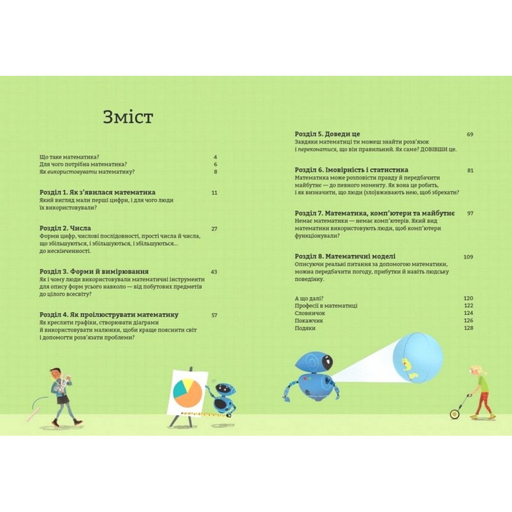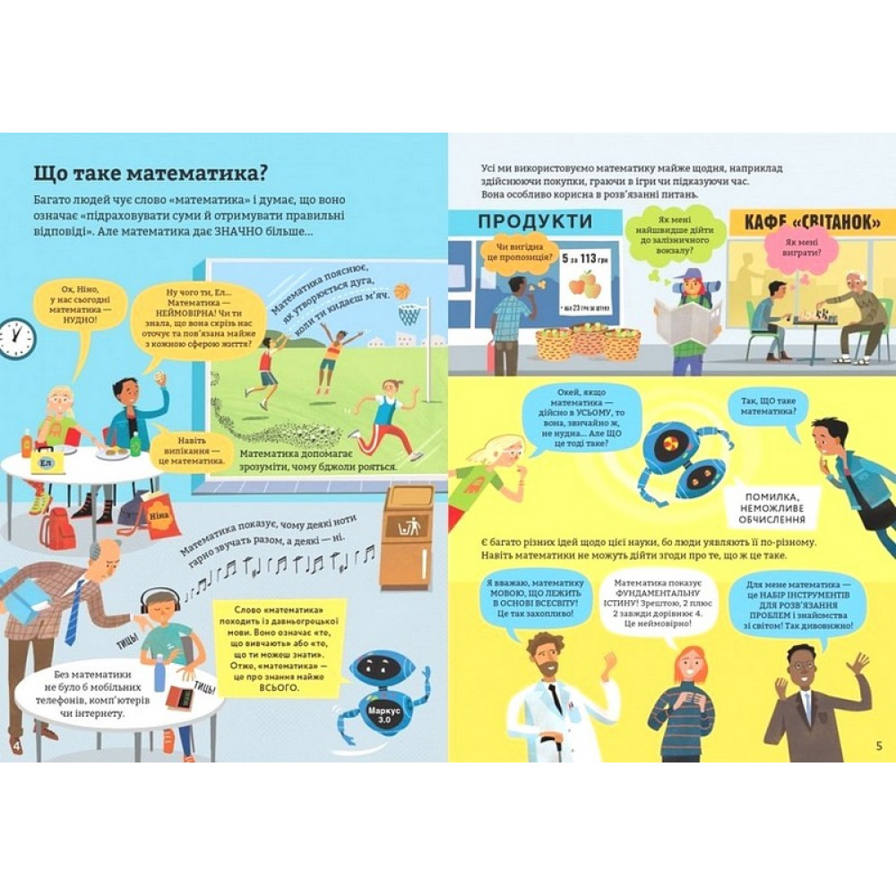 Автор | Том Мамбрей, Сара Халл Серія ...для початківців, Дитяча полиця Рік 2024 Мова Українська Ілюстрації Кольорові Жанр Математика, Пізнавальна література366 ? 430 ?353 грн 1'000 грн 340 грн 2'000 грн 327 грн 3'000 грн КупитиВсе про “Математика для початківців” Від видавця Довгоочікуване продовження підліткової серії «Для початківців» у #книголав. Книжка «Математика для початківців» стане в нагоді не лише дітям, а й дорослим, адже вона у зрозумілій формі розповість все, що потрібно знати про математику. У книзі автори досліджують та пояснюють, як математичні інструменти допомагають людям зрозуміти навколишній світ, передбачити майбутнє і навіть те, як математика робить життя кращим.Окрім пояснень та цікавих діалогів, у книжці є окремий словник із найпоширенішими визначеннями. Чи може математика зробити людей багатшими? Чи можна за допомогою формул передбачити, які спортивні команди виграють більше ігор? Чи можуть рівняння пояснити таємниці Всесвіту? Відповіді на всі ці та багато інших запитань шукайте у книжці. Рецензії 0 Всі характеристики Видавництво#книголав |