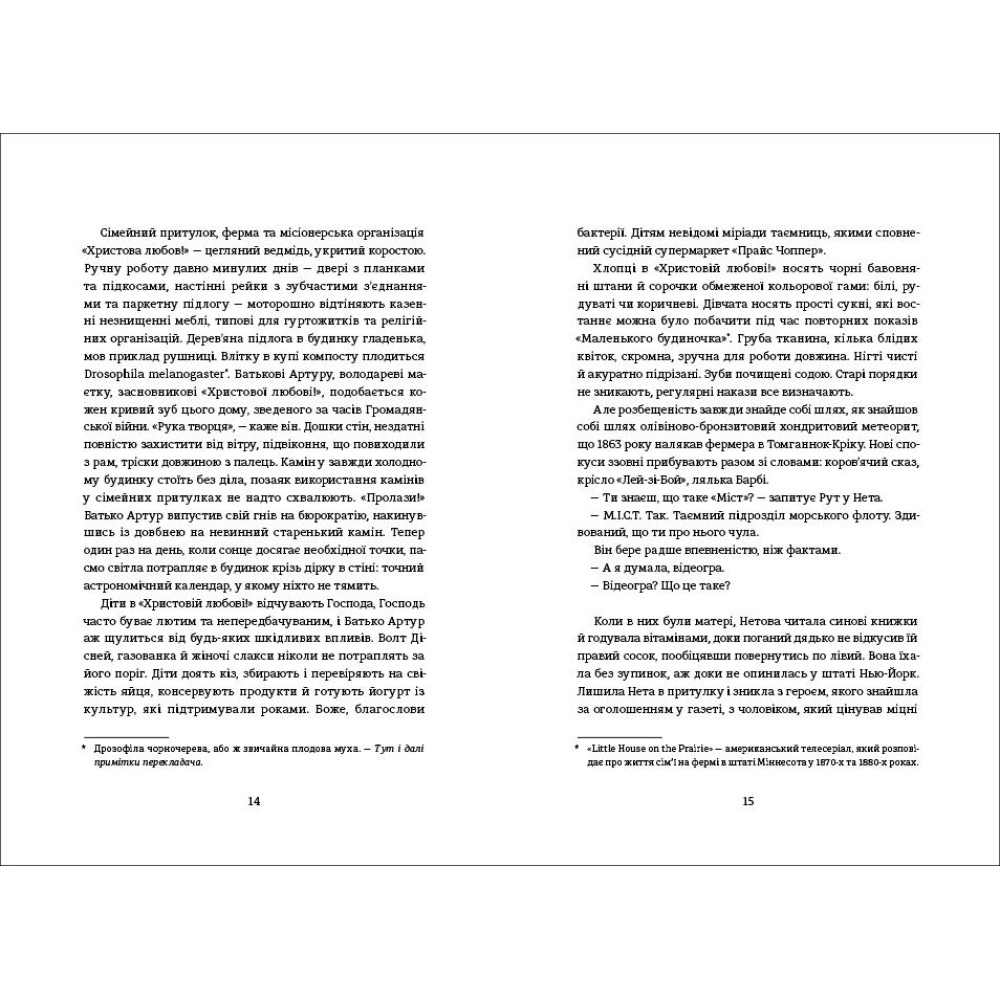 Усе про книжку Містер Сплітфут: Містер Сплітфут» – книга, що викликає захоплення Роман Саманти Гант «Містер Сплітфут» представляє альтернативну літературу США, готичну, відверту й шокуючу. Дія роману Саманти Гант, американської письменниці та сценаристки, розгортається на півночі штату Нью-Йорк. Дві сюжетні лінії містично переплітаються. В одній сироти Рут і Нет вдаються до спіритизму, щоби вирватися з-під опіки релігійного Батька. В іншій, тринадцять років потому, оніміла за загадкових обставин Рут несподівано з'являється в житті вагітної племінниці Кори, аби вести її пішки в невідомому напрямку… «Містер Сплітфут» – історія про шахраїв і фанатиків, байдужість і секс, матерів і метеорити. Це розповідь про болюче дорослішання у світі, де за помилки доводиться розраховуватися кров'ю, а живі бувають огиднішими за мерців. «Ця книжка - не легке читання, а шлях, крізь який інколи треба продиратися. Втім, майстерність Саманти Гант на те заслуговує. Роман розвіює штампи про Америку як країну-мрію, звертається до традицій готики і реалізму, які посилюють одне одного, створюючи химерну оповідь, що постійно тримає читача у напрузі. Переконана, «Містер Сплітфут» сподобається українському читачеві», – зазначає співзасновниця видавництва # книголав Світлана Павелецька.
