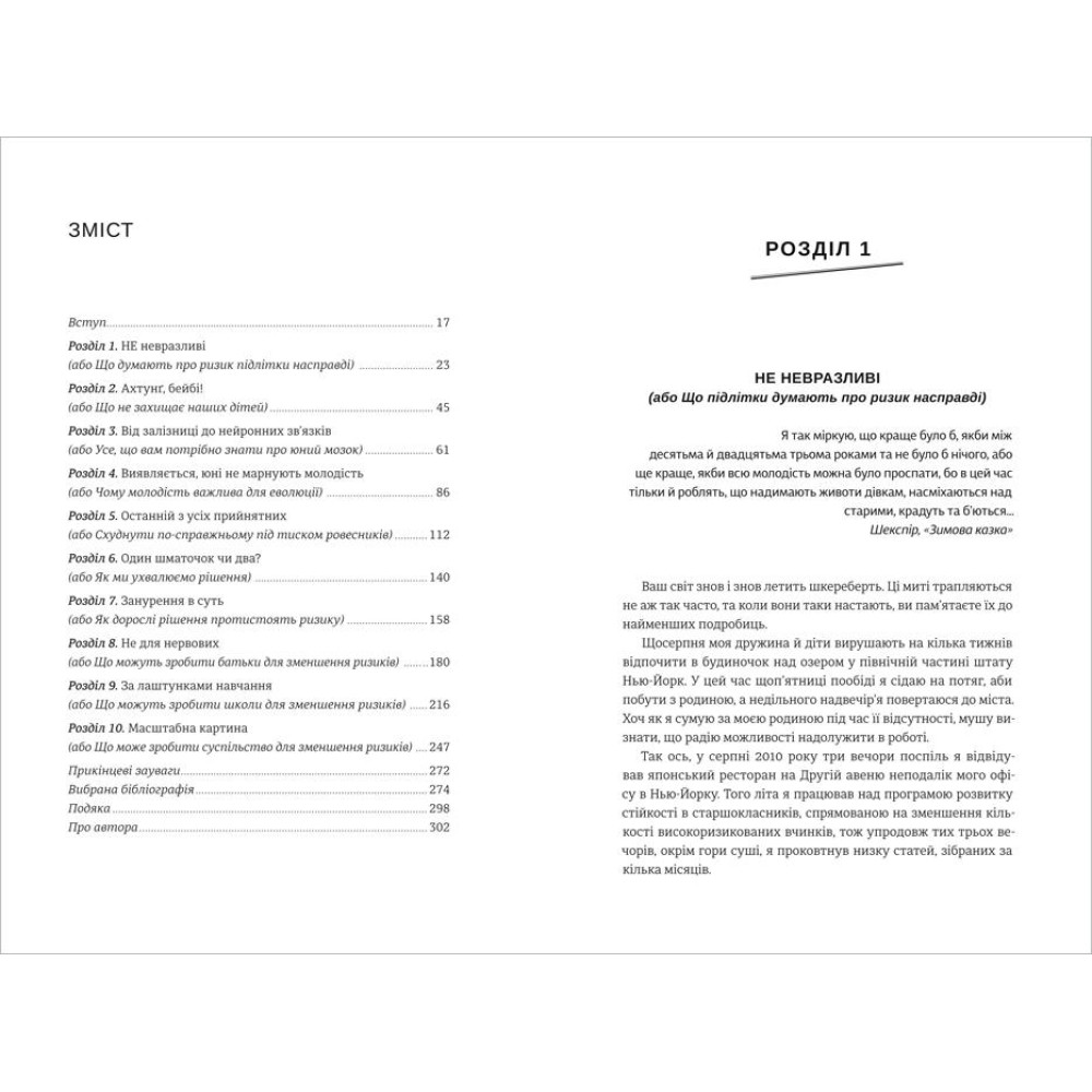 Підлітковий вік – страшне словосполучення для батьків, які пережили цей непростий період зі своїми дітьми чи тільки чекають на цей нього. Неконтрольована поведінка, конфліктність, загравання з небезпекою, вдавана байдужість – неповний перелік викликів, з якими татусям і мамусям доведеться жити, але в жодному разі не боротися. Чому? Бо у всього є свої причини. Розібратися у них, а також у специфіці психологічного та фізіологічного розвитку підлітків, тонкощах спілкування з ними у період статевого дозрівання, допоможе книжка Джесса П. Шаткіна – визнаного американського спеціаліста, кандидата наук, фахівця у галузі громадського здоров'я, заступника директора з питань освіти в Центрі дослідження дитинства Гассенфелдської дитячої лікарні медичного центру Нью-Йоркського університету «Ланґон», викладача дитячої та підліткової психіатрії та педіатрії на медичному факультеті Нью-Йоркського університету.