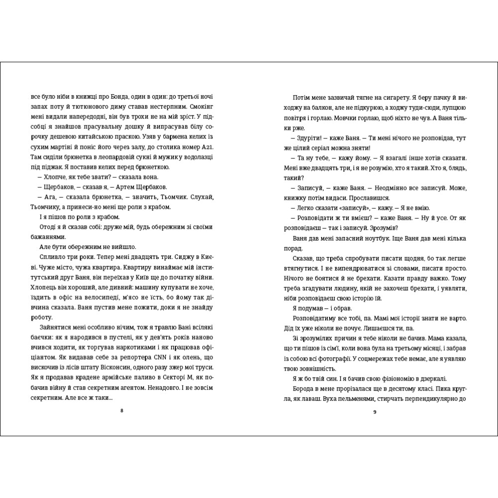 У«Не святий» – дебютний роман Гліба Гусєва, журналіста, одного із засновників онлайн-видання «Бабель». І це спроба намалювати портрет героя нашого часу. Артему Щербакову двадцять три роки, він щойно переїхав до Києва у пошуках себе. Безробітний, вписався у друга. Артем починає вести щоденник і адресує його батькові, з яким ніколи не бачився. Він записує все, що пережив. Про що він може розповісти у свої 23 роки? Як він народився в пустелі Туркменістану і у дев’ять років наново вчився ходити після травми. Як займався рейдерством у Маріуполі, торгував наркотиками і працював офіціантом. Шукав щастя в Америці, де одного разу олень, що вискочив із лісу, зжер його труси. Як продавав крадене армійське паливо в секторі «М», побачив українську війну і став секретним агентом. Ненадовго. І не зовсім секретним. Як звабив багато жінок — майже як у історіях про Джеймса Бонда. Головний герой зростає в епоху повалених режимів і розмитих цінностей, шукає себе і своє місце по-всьому світу. Усі його історії правдиві. Як і будь-які історії про секретних агентів.
