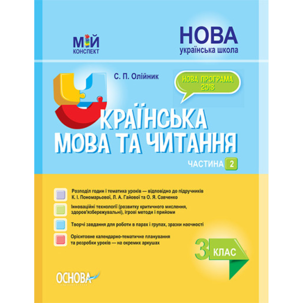 Посібник містить орієнтовне календарно-тематичне планування і розробки уроків української мови та читання у 3-му класі Нової української школи, складені відповідно до вимог нового Державного стандарту початкової освіти (2018) за Типовою освітньою програмою авторського колективу під керівництвом О. Я. Савченко.Розподіл годин і тематика уроків відповідають змісту підручників К. І. Пономарьової, Л. А. Гайової (Українська мова та читання: Підручник для 3-го класу ЗЗСО: у 2-х частинах : Частина 1.— К.: УОВЦ «Оріон», 2020) та О. Я. Савченко (Українська мова та читання: Підручник для 3-го класу ЗЗСО: у 2-х частинах : Частина 2.— К.: УОВЦ «Оріон», 2020).Конспекти уроків, різноманітних за формою проведення, побудовано з урахуванням основних положень Концепції «Нова українська школа», на засадах компетентнісного, діяльнісного підходів, із використанням елементів інтеграції, інноваційних та здоров’язбережувальних технологій, інтерактивних методів та прийомів навчання, сучасного обладнання як складової нового освітнього середовища.