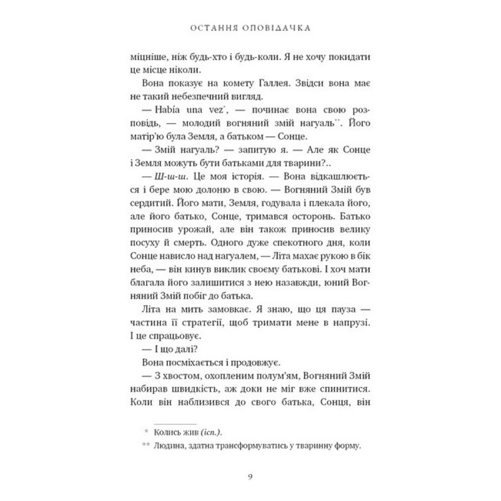 Юна Петра Пенья залюблена в чарівні казки, які їй під ковдрою зоряного неба за декілька годин до загибелі Землі переказує її бабуся Літа. Вона знає, що люди з талантом оповідача народжуються зрідка, тож упевнена: онука стане чудовою оповідачкою. Натомість батьки дівчинки бачать її в майбутньому біологом. Через сотні років міжгалактичної подорожі їх виведуть зі стану стазису, аби разом з іншими обраними підготувати все для поселення людей на планеті Саґан. Чому так важливо пам’ятати все, що нам лишають у спадок предки? Хто ціною власного життя таємно передасть Петрі знання про всі легенди й казки земної цивілізації? І що насправді приховують прадавні історії її народу? Ключем до чого стануть вони під час міжгалактичної подорожі до нової планети, розпочати життя на якій авторка цієї книги дуже невипадково доручає саме дітям? На ці та багато інших, іноді зовсім недитячих, запитань пропонує свої відповіді відома американська письменниця Донна Барба Іґера — неперевершена оповідачка.