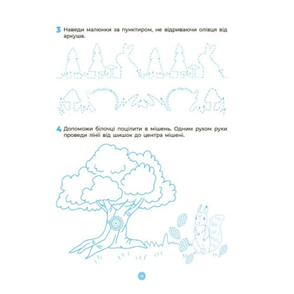 Зошит містить вправи, спрямовані на розвиток графічних навичок письма. Їх виконання сприяє розвитку дрібних м’язів пальців та кистей рук координації та ритму рухів розвитку окоміру та просторового уявлення умінню аналізувати та міркувати розвитку мовлення та мислення.Завдання відповідають вимогам освітніх напрямів оновленого Базового компонента дошкільної освіти.Ми розробили зошити на допомогу майбутньому першокласникові, спрямовані на розвиток графічних навичок письма, мовлення, дрібної моторики рук, координації на ритму рухів. А ще зошит допоможе потренуватися аналізувати та міркувати!Усе, що вам потрібно для роботи із зошитом, — кольорові олівці та15 хвилин на день. Можна і більше, усе залежить від індивідуальних особливостей дитини.Наші завдання розроблено вчителями та тренерами НУШ, які точно знають, як підготувати дитину до 1-го класу та полегшити майбутню адаптацію у навчальному середовищі. За QR-кодом доступні файли для завантаження з додатковими матеріалами.