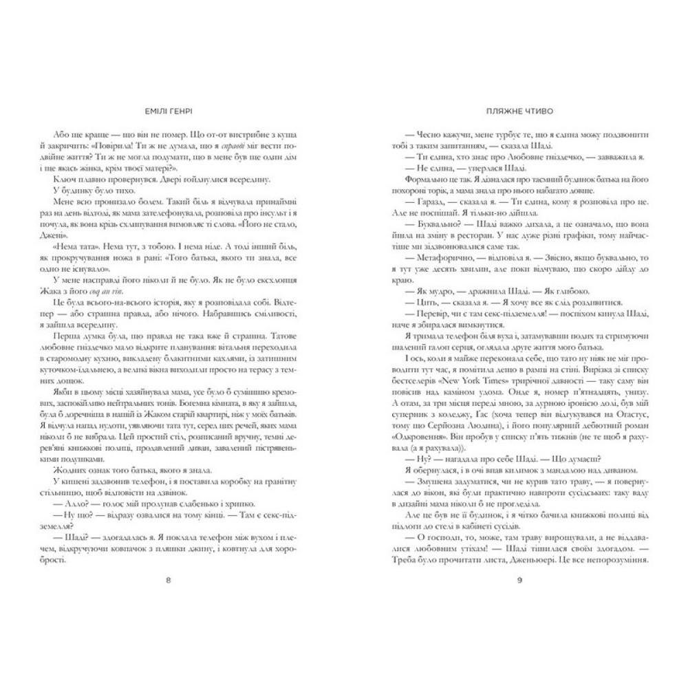 Увага! Продукція сексуального характеру або інша продукція з віковим обмеженням. Продаж неповнолітнім заборонено. Продаж відповідно до вікового обмеження.Феномен BookTok! Оґастус Еверет — знаний прозаїк. Дженьюері Ендрюс — авторка романтичних бестселерів. Поки вона виписує свої «Довго й щасливо», він убиває всіх персонажів. У них немає нічого спільного. Хоча ні, є одне: найближчі три місяці їм доведеться прожити в сусідніх будинках, страждаючи кожен від своєї життєвої драми і на додачу ще й від творчої кризи. Якось так стається, що одного туманного вечора вони укладають парі, що має вивести їх із глухого кута: Оґастус протягом літа напише щось життєрадісне, а Дженьюері спробує створити новий «великий американський роман». Вона щосуботи організовуватиме йому вечори як у романтичних комедіях, а він влаштує їй інтерв’ю з вцілілими учасниками смертельного культу (а чому б ні?). Кожен закінчить свою книжку, і ніхто не закохається. Точно-точно.