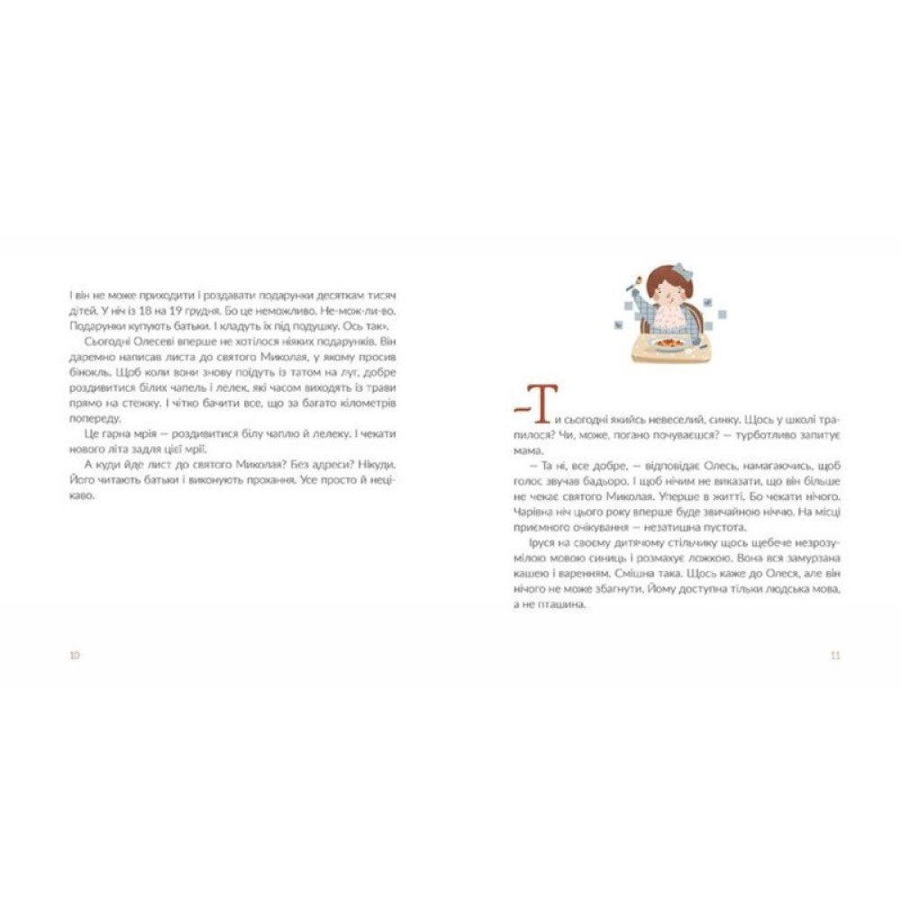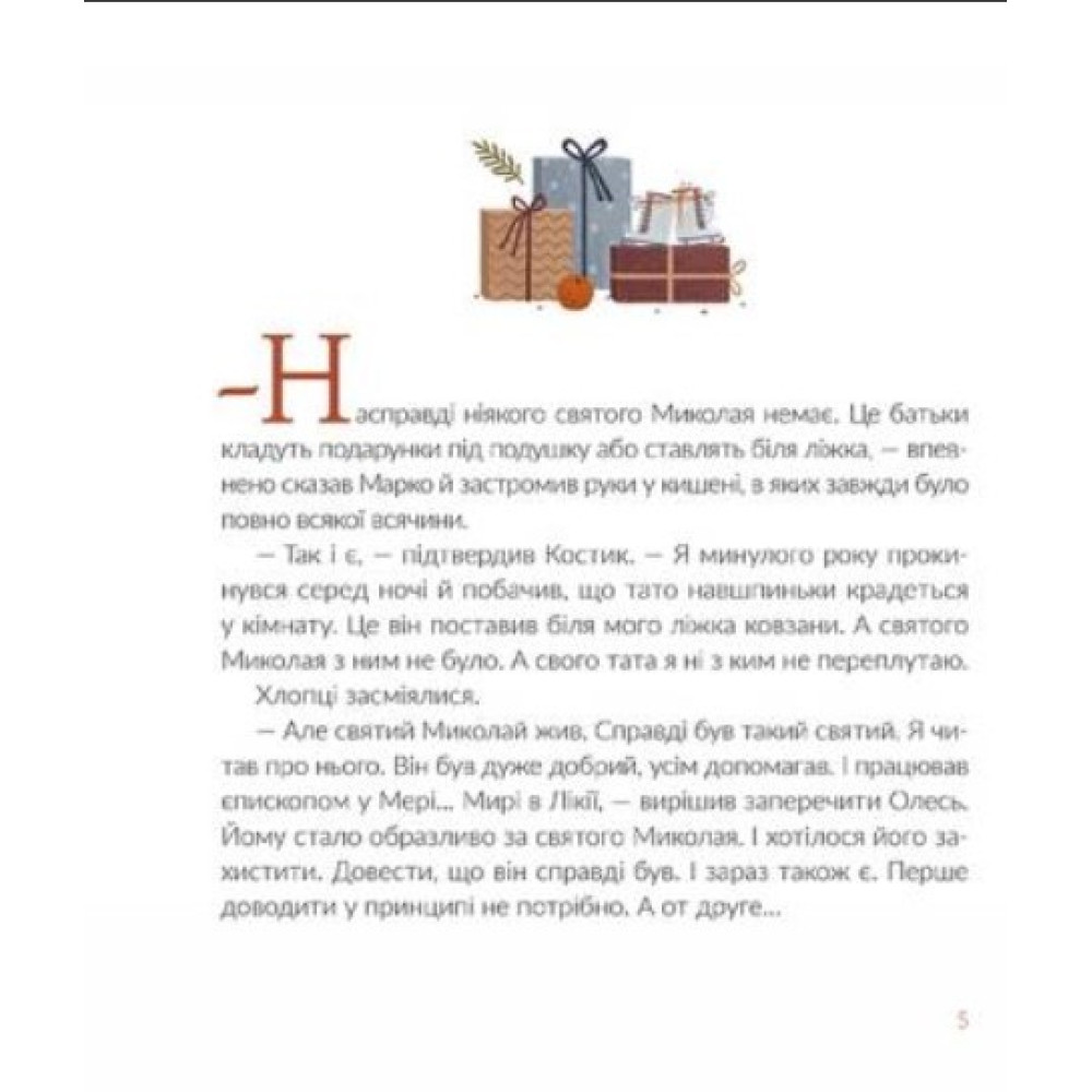 Щороку Олесь нетерпляче чекає приходу святого Миколая. Та ось після розмови з однокласниками у серце хлопчика закрадається сумнів: чи справді святий існує? Може, дарунки ховають під подушку батьки? Олесь дуже засмучений, та його чекає справжнє диво. Святий приходить до нього і запрошує в найдивовижнішу мандрівку у вічному часі. А ще наділяє особливим даром...