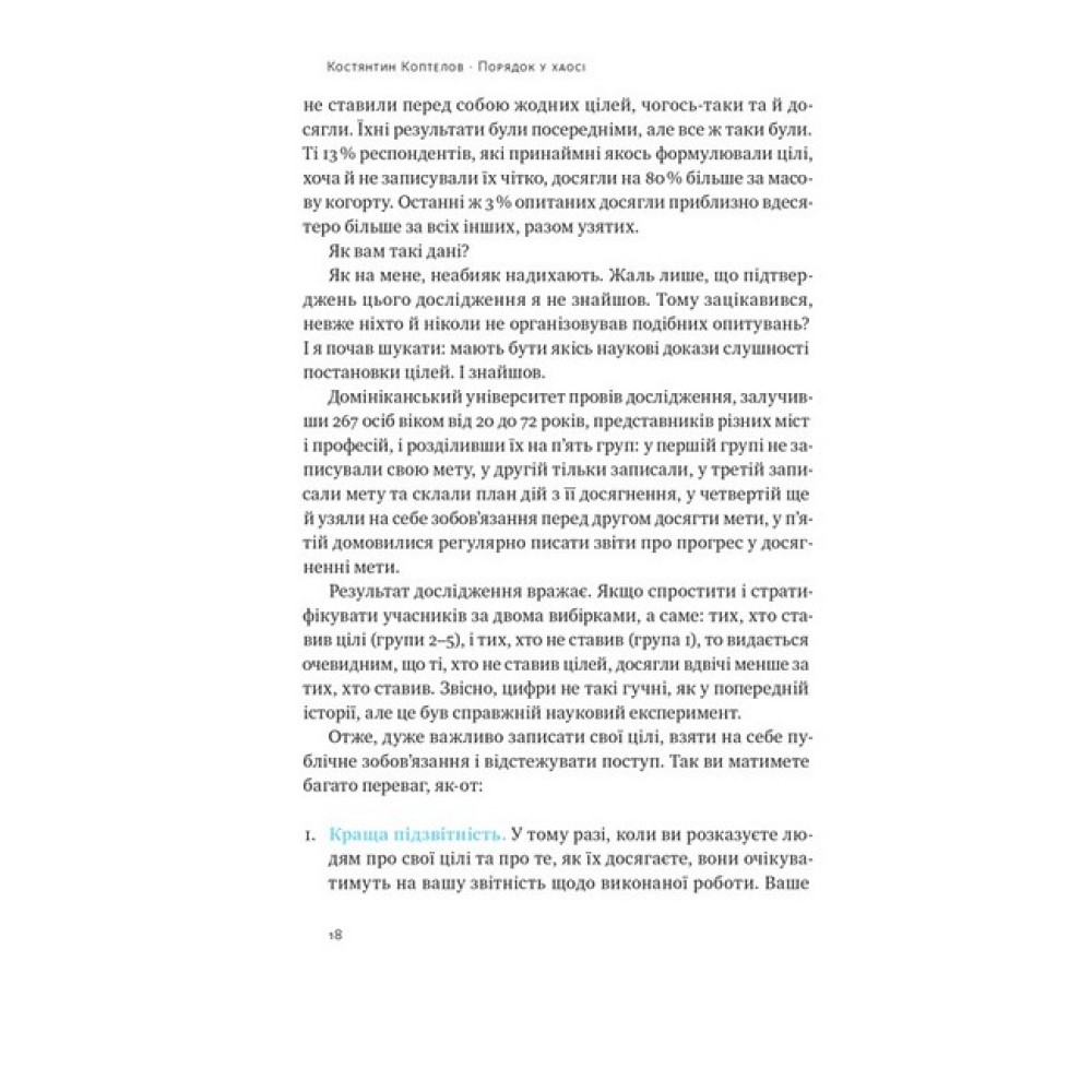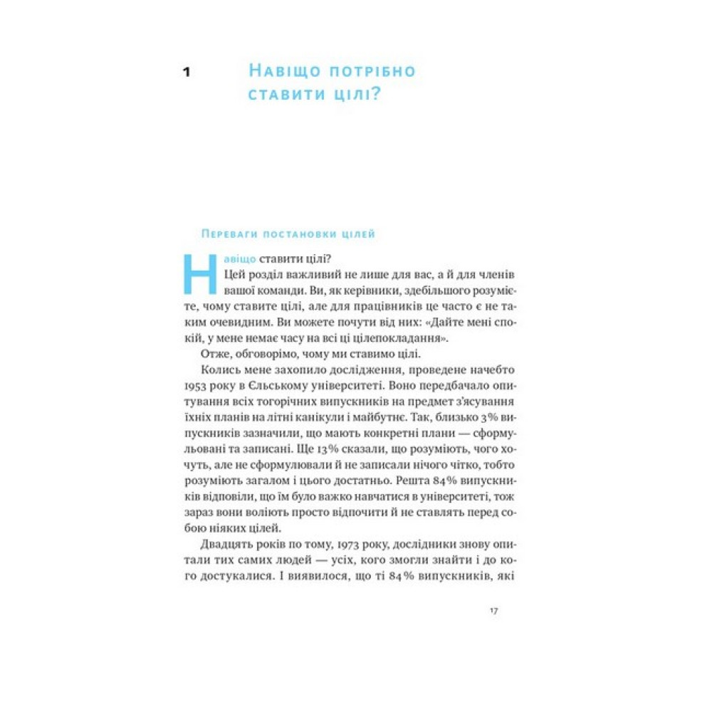 У сучасному світі компанії прагнуть постійно покращувати свої показники та випереджати конкурентів. Для цього варто чітко розуміти власні цілі й бажані результати. Тут і вступає у гру метод Objective and Key Results (OKR). У цій книжці автор крок за кроком пояснює, якими є переваги цілепокладання, які нові підходи до планування застосовують у сучасному світі, а також розповідає про основні принципи, структуру й інструменти OKR. Особливу увагу приділено до впровадження методу на практиці й опису типових помилок. Метод OKR дасть підприємцям змогу зосередитися на найважливішому й отримати більше за менший проміжок часу.