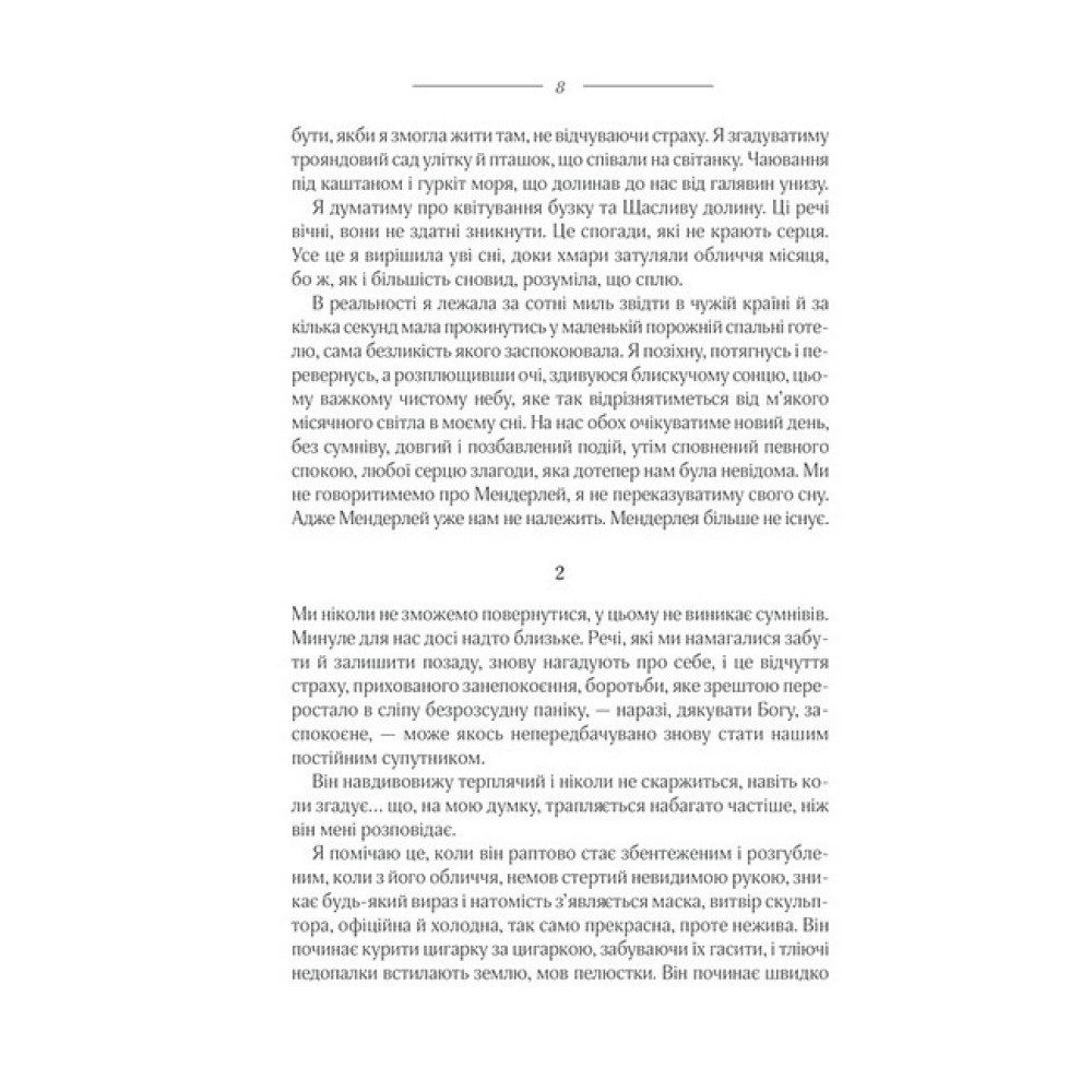 Вона вийшла заміж за багатого англійського аристократа Максиміліана де Вінтера. Але тінь його колишньої дружини нависла над її життям. Нова місіс де Вінтер намагається догодити чоловікові, стати справжньою аристократкою та бути не менш чудовою, ніж Ребекка — її попередниця, яку, здавалося, усі любили. Ходять чутки, що вона трагічно загинула: потонула, вийшовши на яхті в море вночі під час негоди. Усе змінить бал, адже місіс де Вінтер за порадою економки вдягне костюм, у який колись була вбрана й Ребекка. Ця фатальна помилка розкриє таємницю смерті колишньої дружини Максиміліана… І докорінно змінить життя її наступниці.