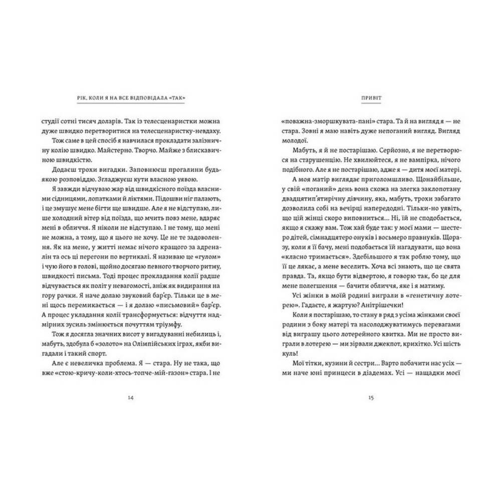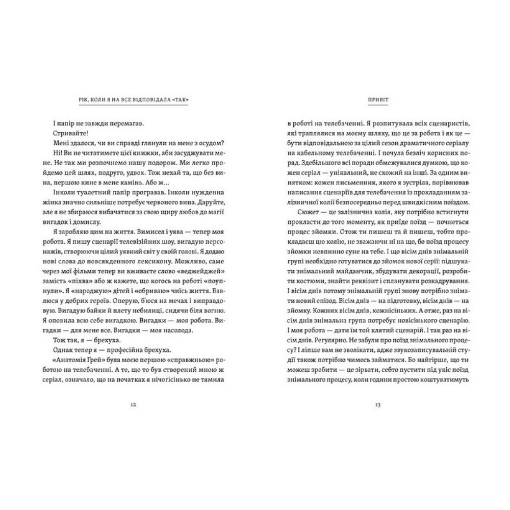 Шонда Раймс — сценаристка популярних серіалів «Анатомія Ґрей», «Скандал», «Бріджертони» і «Як уникнути покарання за вбивство». Вона — володарка багатьох телепремій, які отримувала зокрема за те, що «змінила обличчя американського телебачення», показуючи в своїх серіалах табуйованих суспільною думкою героїв. На піку своєї кар’єри Шонда зрозуміла, що надто часто відмовляється від щедрих можливостей, які пропонує їй життя. Тож безстрашно вирішила цілий рік відповідати всім викликам «так»! Щиро й відверто Шонда Раймс розповідає про те, як боролася із зайвою вагою і страхом публічних виступів, училася розподіляти час між роботою і сім’єю, приймати визнання, любити й розуміти себе, і навіть — казати «так» слову «ні».