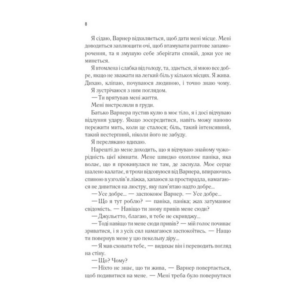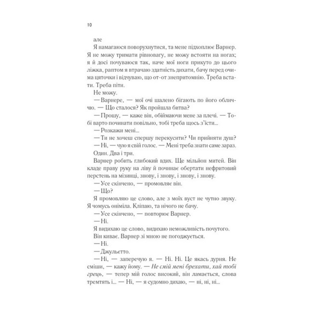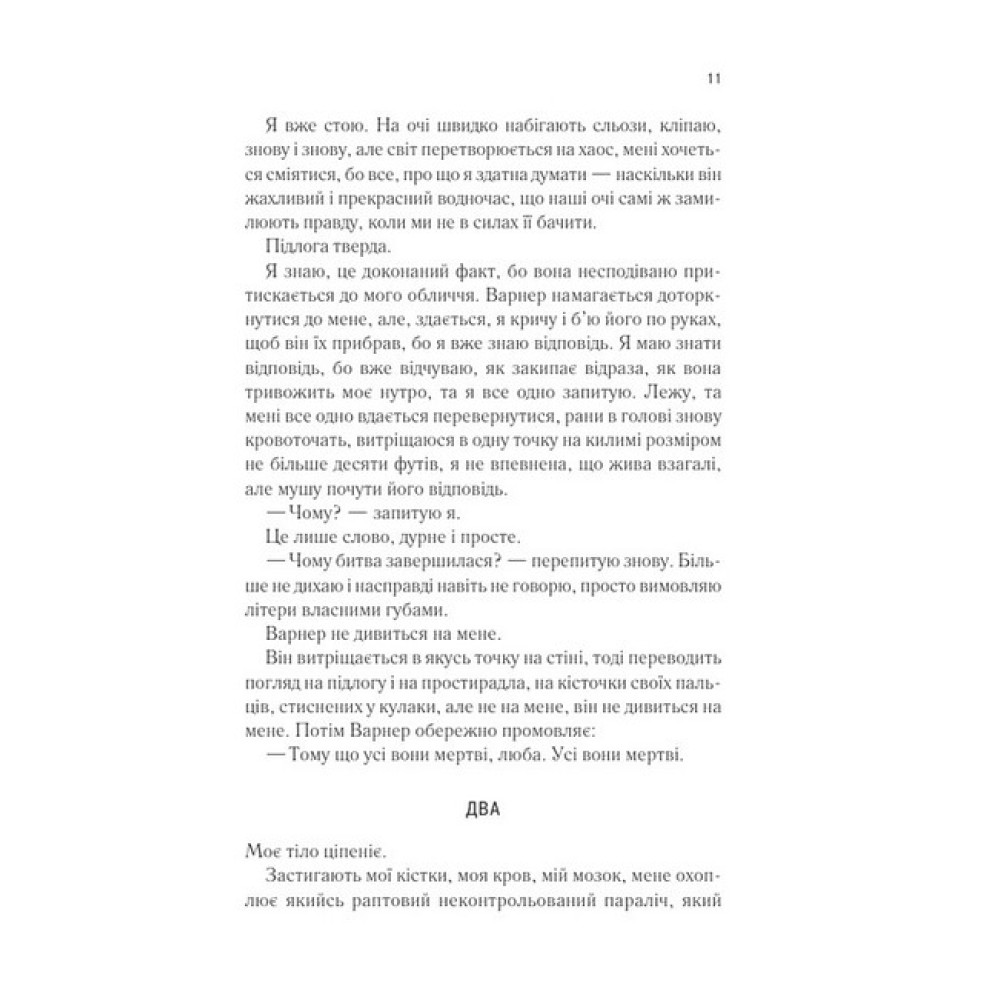 Вперше українською третя книга серії «Знищ мене» Світ Джульєтти розірваний війною. Її нову домівку, Омега-Пойнт, стерто з лиця землі. Дівчина не знає, чи вижив хоч хтось із її друзів-повстанців. А головне - чи вижив Адам… Та вона залишається вірною своїй меті: попри все, потрібно знищити "Відродження". І допомогти їй у цьому може тільки Варнер, хоча, здавалося б, іще вчора він був останньою людиною на світі, якій можна довіритись… І все ж Джульєтта завдячує Варнеру життям. Він обіцяє допомогти їй опанувати сили і врятувати світ, що котиться до загибелі. Проте натомість в обмін на допомогу він може дещо попросити…