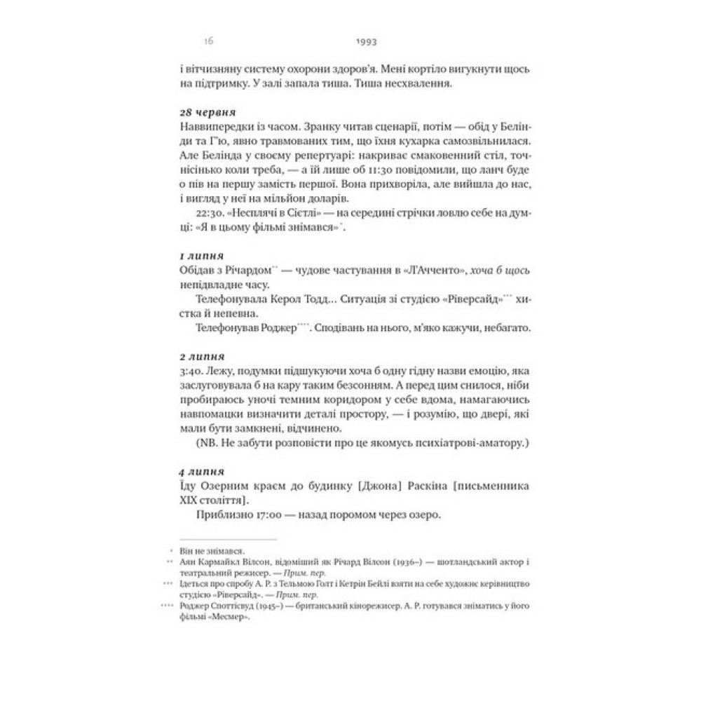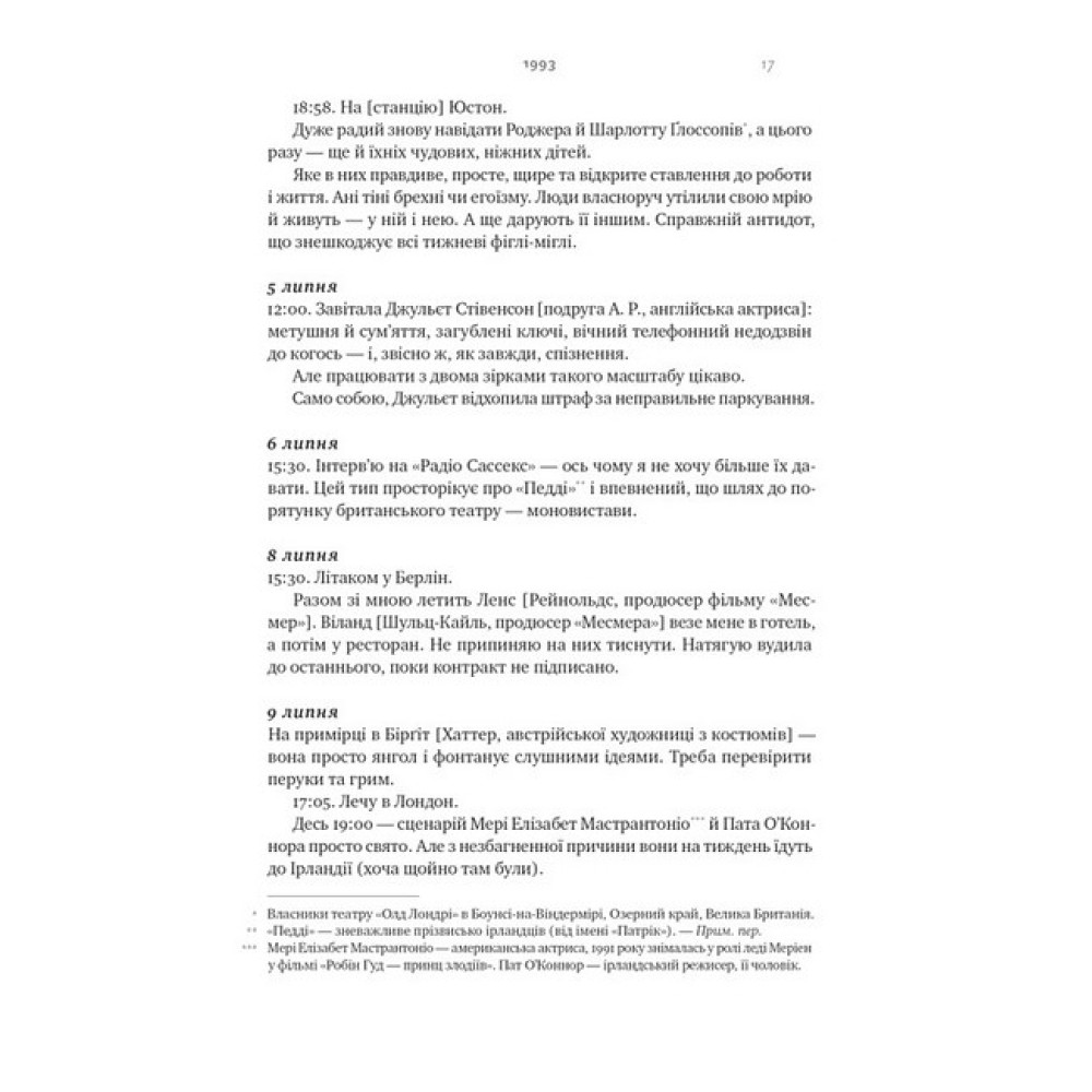 Читати «Шалено, глибоко» — це як перебувати за лаштунками життя Алана Рікмана: дивитися на професора Северуса Снейпа з «поттеріани», Ганса Ґрубера з «Міцного горішка» й полковника Брендона з «Розуму і почуттів». Але не тільки актора, а й режисера, чоловіка, друга, мандрівника. Не на образ, а на справжнього Рікмана. Бо образ — це завжди чиєсь спотворене дзеркало.Його сприймали як пихатого аристократа — а він з юності був відданий лейбористським ідеалам і скептично ставився до умовностей британського роялізму. Його вважали актором, перед чиєю харизмою не встоїть жодна жінка, — а він пів століття був непохитно вірний Рімі Гортон.Він був не таким, як його уявляли. А яким? Збагнути це допоможуть 26 щоденників, які Рікман вів від 1993 року й до смерті у 2016-му. Шалено, глибоко, іронічно, щиро. Де не кожен день — свято, але кожен — життя.Щоденники Алана Рікмана дають унікальну інформацію про його публічне та особисте життя. Читати їх — наче слухати його розмову з близькою людиною. Ви познайомитеся не тільки з неперевершеним професійним актором, а й із другом, мандрівником, шанувальником, режисером, ентузіастом — яким він був за кадром.Для найширшого кола читачів. Книжка буде цікавою тим, хто захоплюється біографіями видатних постатей, а також шанувальникам серії фільмів «Гаррі Поттер». Про автора: Алан Рікман — британський актор кіно та театру. Особливо відомий за роллю Северуса Снейпа в серії фільмів «Гаррі Поттер». Та насправді він зіграв найрізноманітніших персонажів у культових фільмах різних жанрів, як-от «Міцний горішок», «Робін Гуд», «Зимовий гість», «Розум і почуття», «У пошуках Галактики», «Реальна любов» тощо. У середині 1970-х почав вести нотатки, а з 1990-х це переросло в постійне заняття.