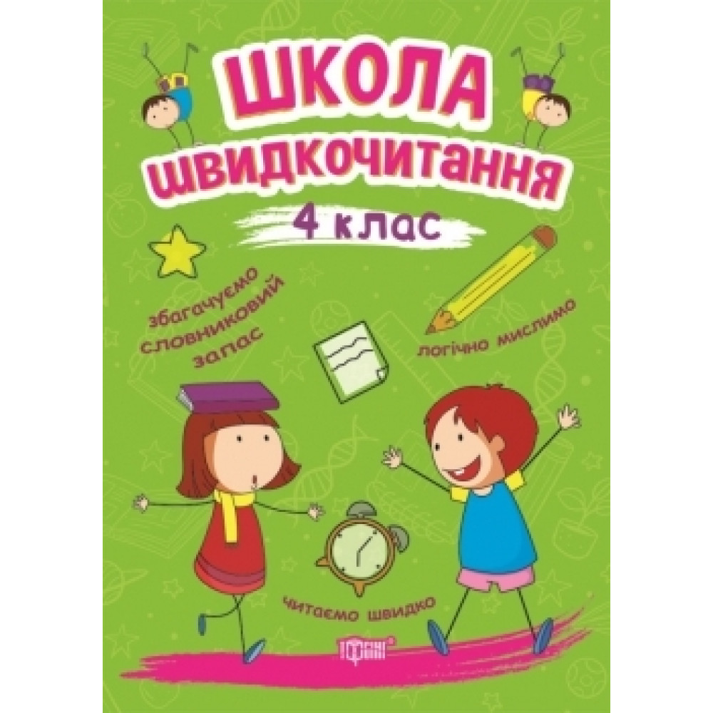 «Школа швидкочитання. 4 клас» - це посібник, завдання якого спрямовані на формування, розвиток і вдосконалення навички швидкого читання в учнів 4 класу. Видання містить систему вправ для нарощування темпу читання, розвитку периферичного зору, мислення, мовлення, уяви, пізнавальних і літературно-творчих здібностей учнів.