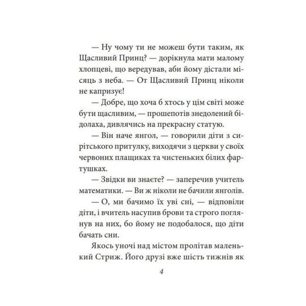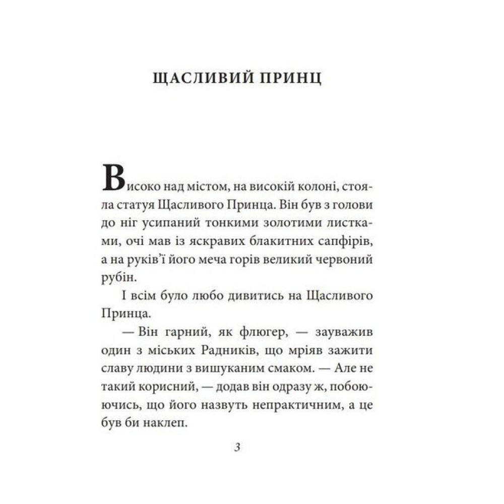 Свої перші казки видатний ірландський письменник Оскар Вайлд (1854–1900) опублікував 1888 року. Відтоді читацька цікавість до них не згасає. Адже кожна фантастична оповідка письменника, попри вдавану простоту, вирізняється захопливим сюжетом та оригінальним стилем викладу. Майстерність автора спонукає і дітей, і дорослих перейматися радощами та невдачами героїв, розмірковувати їхніми вчинками. Чому Щасливий Принц насправді був не таким уже й щасливим, а справжня дружба між Гансом та Мельником неможлива? Що мало статися, щоб Велетень поборов егоїзм і жадібність? Чи не зависоку ціну заплатив Соловейко за здійснення дива?