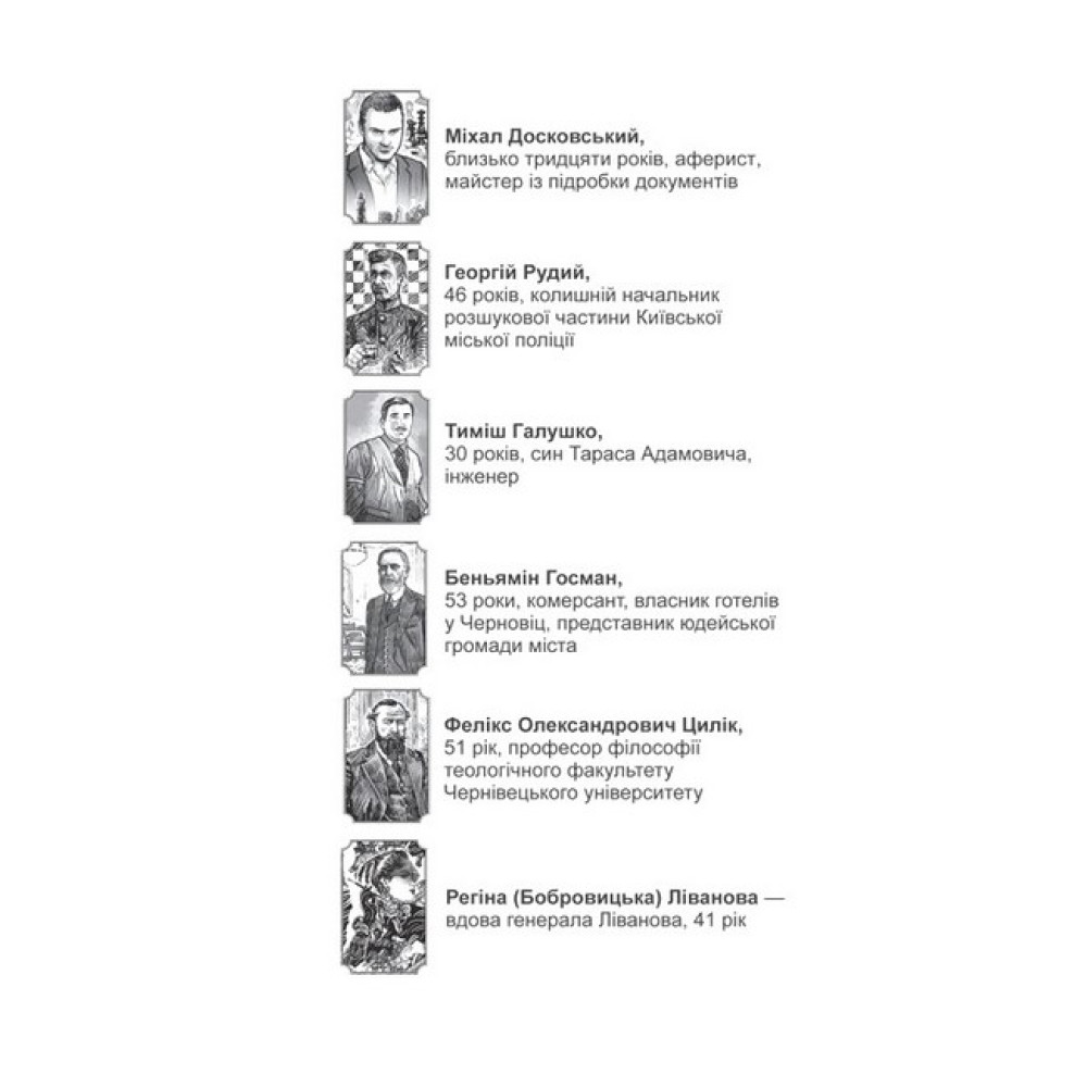 Олександр Красовицький (1967 р.) — директор і головний редактор видавництва «Фоліо», хімік за освітою. Автор книжки «Імператив. Бесіди в Лясках» (спільно з видатним польським режисером Кшиштофом Зануссі). Історичний детектив — його дебют у царині художньої літератури. Євгенія Кужавська (1986 р.) дебютувала 2017 року з містичним оповіданням «Кальвадос». Авторка біографічного роману-фентезі «Зеров. Поховальний промовець» та книжки в жанрі нонфікшн «Микола Зеров». Оповідання «Якби не було Діни» стало пробою пера в детективному жанрі. Тарас Адамович Галушко вирушає в Чернівці, щоб встигнути розкрити давню справу «збирачів гіацинтів» — викрадачів людей. У Києві тим часом відбувається зухвале пограбування Купецького банку, тож Яків Менчиць починає полювання на вправного ведмежатника. У Чернівцях старий слідчий поринає в розслідування вбивства біля ратуші та пошук давніх сувоїв у стінах Резиденції митрополитів Буковини та Далмації. Однак, можливо, слідчий зробив помилку, поїхавши з рідного міста, адже «збирачі гіацинтів», використовують для полювання на своїх жертв Контрактовий ярмарок. До того ж можуть загрожувати його секретарці — Мірі Томашевич, яка лишилася в Києві.