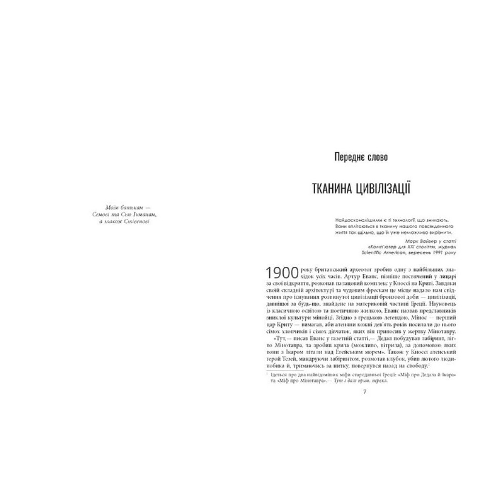 Історія людства — це історія текстилю, адже саме він, без перебільшення, створив наш світ. Потреба в тканинах стала рушієм технологій, підприємництва, політики та культури. Текстильний бізнес розповсюдив алфавіт, арифметику та подвійну бухгалтерію, стимулював хімічні дослідження, навчив людей мислити в парадигмі двійкового коду, дав початок фінансовим установам, сприяв работоргівлі, фінансував Відродження та імперію Великих Моголів... Вірджинія Пострел синтезує новаторські дослідження з археології, економіки та інших наук, аби розкрити цю дивовижну історію: від ассирійських торговців тканинами, давньокитайських шовківників, мінойців, які експортували до Єгипту вовну, пофарбовану дорогоцінною пурпуровою фарбою, і римлян, одягнених у дорогий китайський шовк, до сучасних виробників тканин і науковців, які створюють новітні волокна з незвичайними властивостями.Вірджинія Пострел — відома журналістка, письменниця, колумністка і спікерка, чия робота охоплює широкий спектр тем, від соціальних наук до моди, зосереджуючись на перетині культури, комерції та технологій. Вона є запрошеним співробітником Інституту політичної економії та філософії Сміта в Університеті Чепмена, де вона викладає курси, що поєднують гуманітарні та економічні науки.