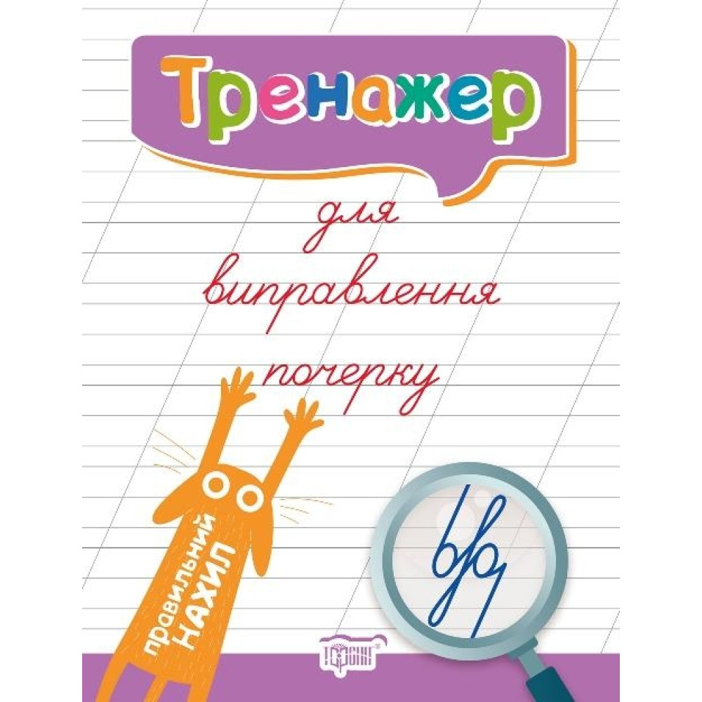 Книги серії ''Тренажер'' являються незамінним помічником вашої дитини. Завдяки цікавим завданням і тренувальним вправам в учнів поступово вироблятимуться навички правильного і охайного написання літер, слів та текстів. Незвичайна форма подання вправ, представленних у данному посібнику, сприяє виправленню почерку дитини, надаючи дитині задоволення під час подолання труднощів і досягненню успіхів. Тренажер може бути використаний як у школі на уроках, так і в позаурочний час, а також удома для додаткового тренування письмової навички та розвитку дрібної моторики