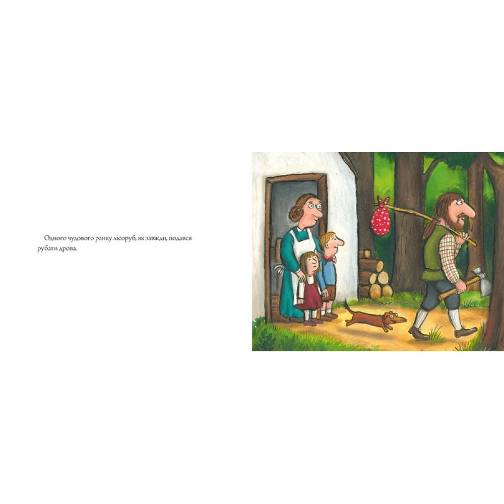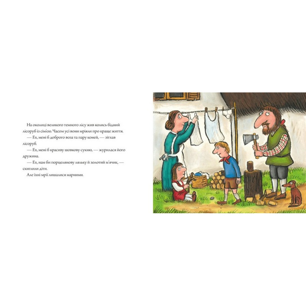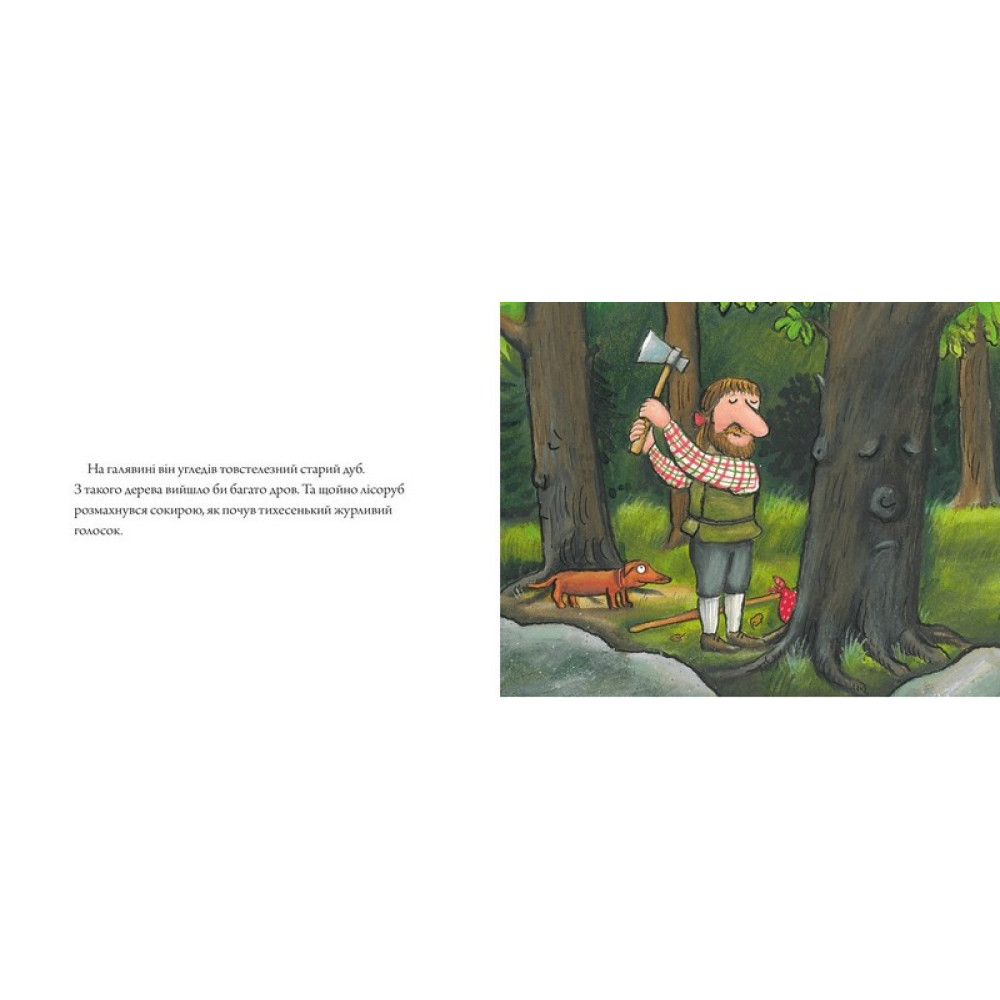 Яке бажання ви б загадали, якби зустріли лісову фею?Щойно лісоруб розмахнувся сокирою, як почув тихесенький журливий голосок: «Не кривдь моє дерево, і я виконаю будь-які три бажання — твої чи твоєї сім’ї». Здавалося б, ось воно, щастя! Але не все так просто…Аксель Шеффлер створив власну ілюстровану версію за мотивами англійської казки.Цікава, легко викладена історія, яка підійде як для першого самостійного читання, так і для спільних читань з батькамиПовчальна казка про те, що найкращі втілювачі наших бажань — це ми саміАвтор тексту та ілюстрацій — всесвітньо відомий Аксель Шеффлер, що ілюстрував зокрема серію книжок про Шустя і Шуню, а також Ґруффало