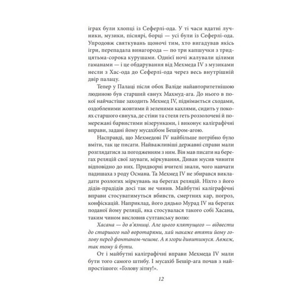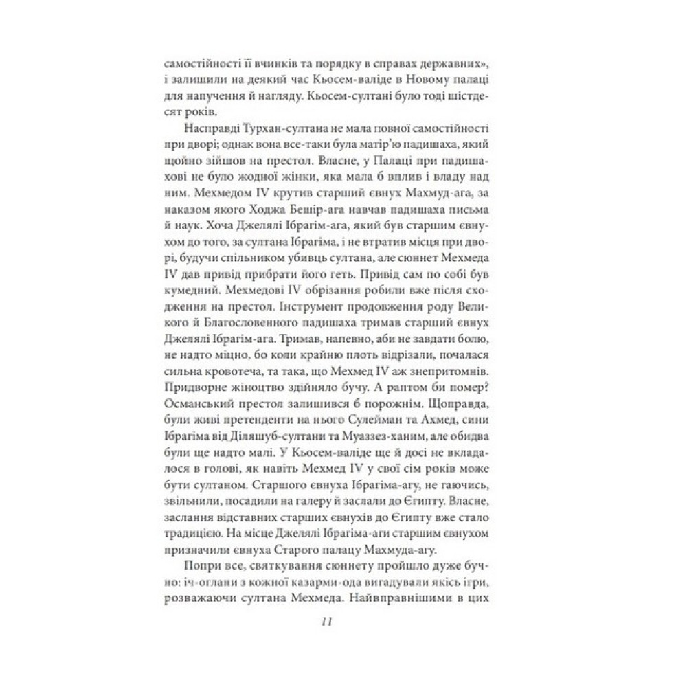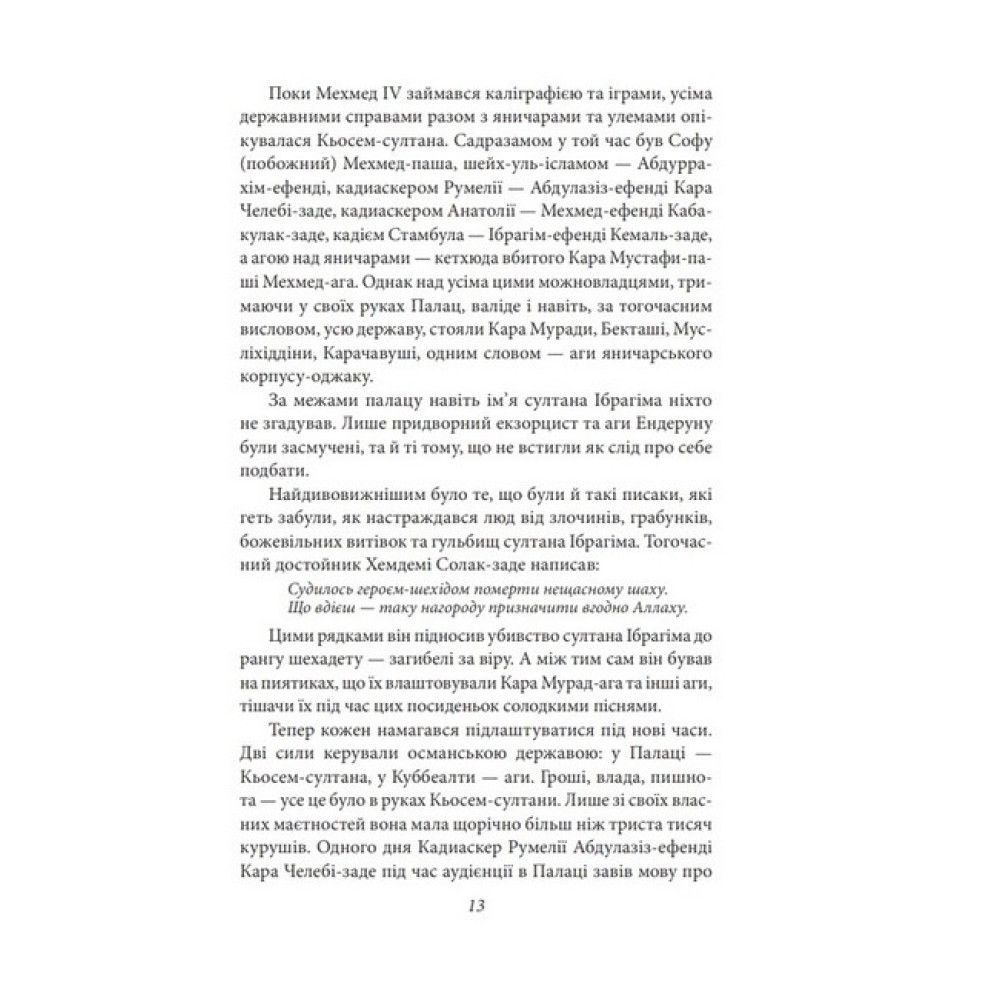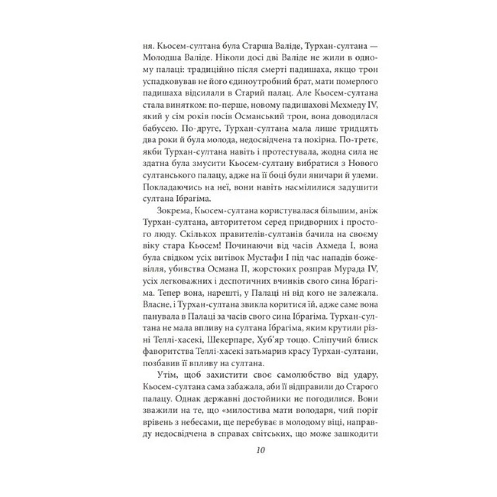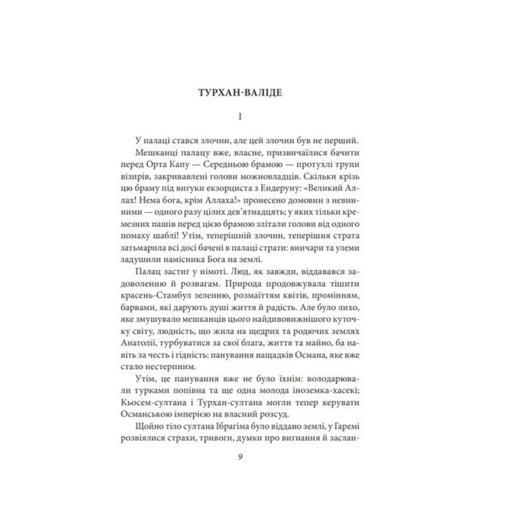 Ахмет Рефік Алтинай (1880—1937) — турецький історик (науковець і педагог), військовий і письменник. Досліджуючи історію Османської імперії, він, зокрема, визначив та описав таке явище, як Жіночий султанат, окреслюючи цим поняттям добу активної участі жінок (від Хюррем-султани, відомої на Заході як Роксолана, до Турхан-султани) у політичному житті та управлінні державою. Українка за походженням, Хатідже Турхан у 12-річному віці потрапила в полон і незабаром стала наложницею в гаремі султана Ібрагіма І. Здобувши статус спочатку матері спадкоємця престолу, а потім валіде-регентки та здолавши складний шлях палацових інтриг у боротьбі за владу, Турхан тривалий час безпосередньо керувала Османською імперією. Поєднання чарівної вроди, гострого розуму та безкомпромісної вдачі допомогло їй зажити слави однієї з найвпливовіших жінок в історії. Про події тих часів і непересічну постать Турхан-валіде йдеться в однойменному романі, з перекладом якого українською мовою наші читачі мають змогу ознайомитися вперше.
