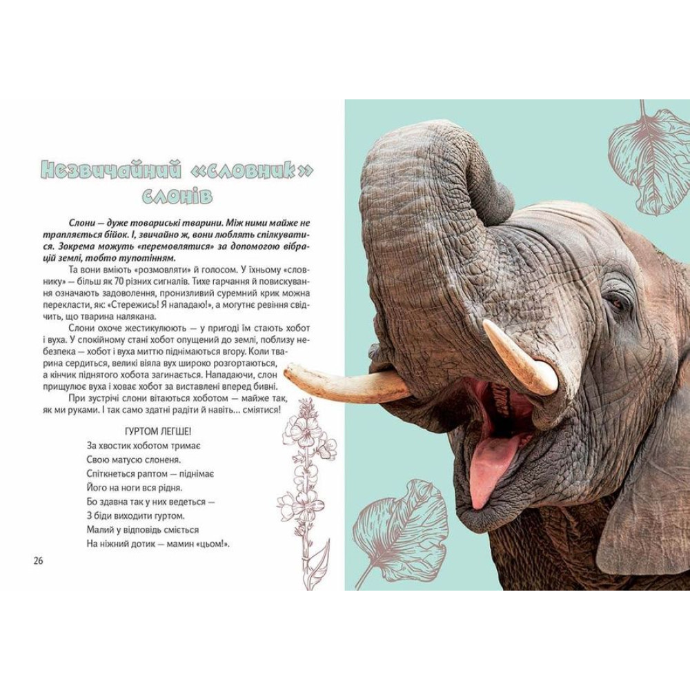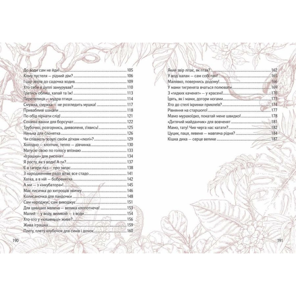 Як тварини спілкуються між собою, як вони виховують і піклуються про своє потомство — маленькі ерудити дізнаються з нашої читанки. А ще прочитають цікаві віршики й загадки про кожного «героя» розповіді, довідаються багато подробиць про мешканців дикої природи.