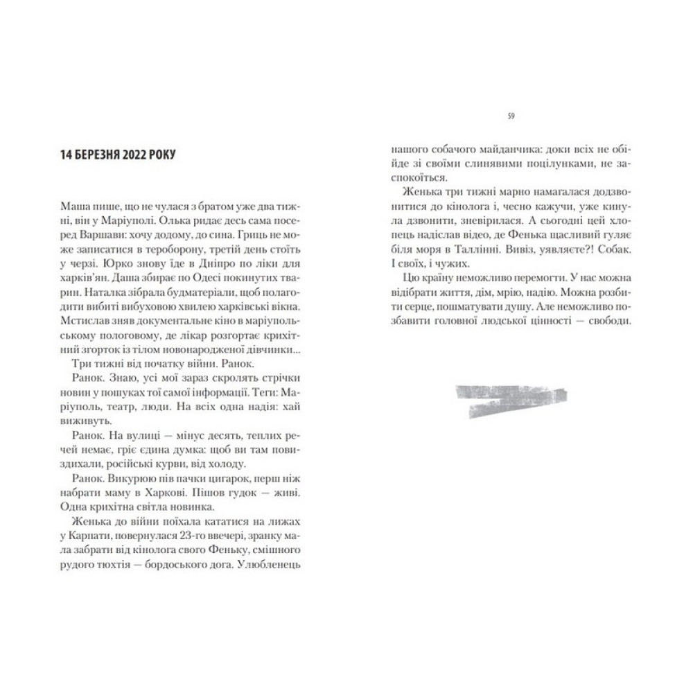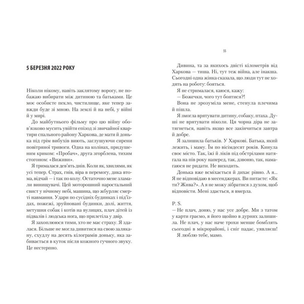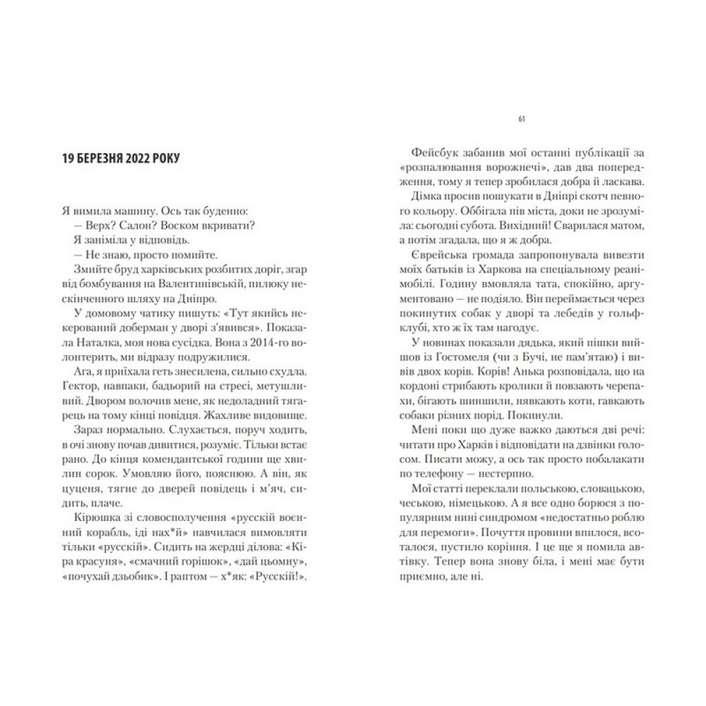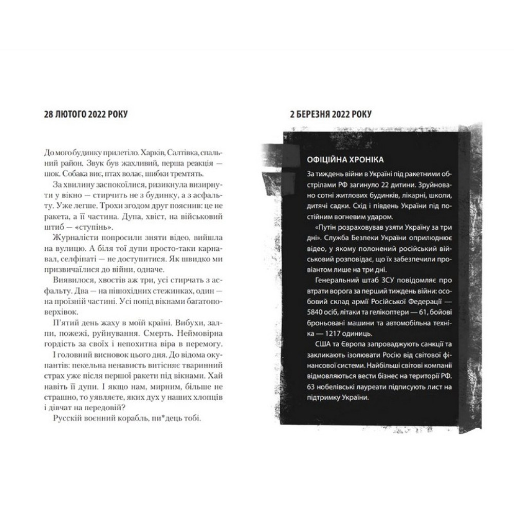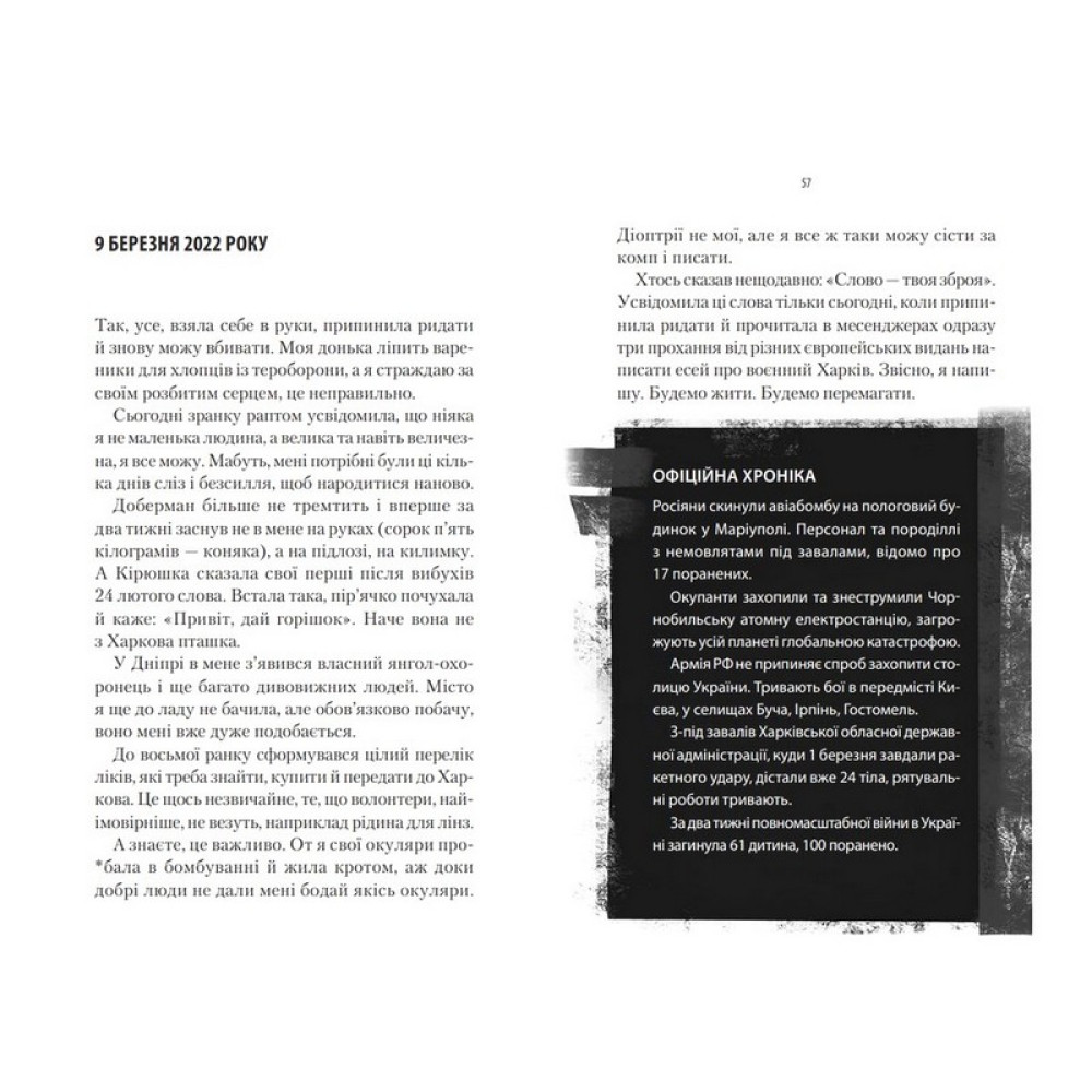 Журналістка, психологиня, блогерка з Харкова Анна Гін, як завжди щиро, правдиво та щемко, ділиться пережитим. День за днем її думки укладаються в цілісну історію — щоденник першого року повномасштабної війни Росії проти України. Особисту історію доповнюють новинні зведення й пам?ятні моменти. Ракети за вікном, евакуація, втрата найближчих, вірний доберман, нові друзі, розчарування та віднайдені сенси…У текстах авторки багато читачів знайдуть себе і навіть відкриють пережиті події по-новому."Ця книжка для всіх, кому важливі не лише факти, а й почуття та рефлексії. Я не історикиня, не політикиня, не чиновниця. Звичайна людина, яких мільйони. Живу в Харкові й бачу ракети не по телевізору, а з вікна своєї квартири. Я хочу розповісти правду про цю жорстоку й несправедливу війну, яку розв’язала Росія в моїй країні. Друзі, яких розкидало по всьому світу, постійно запитують: «Як ти там?». Я відповім усім одразу. На сторінках цієї книги."- Анна Гiн