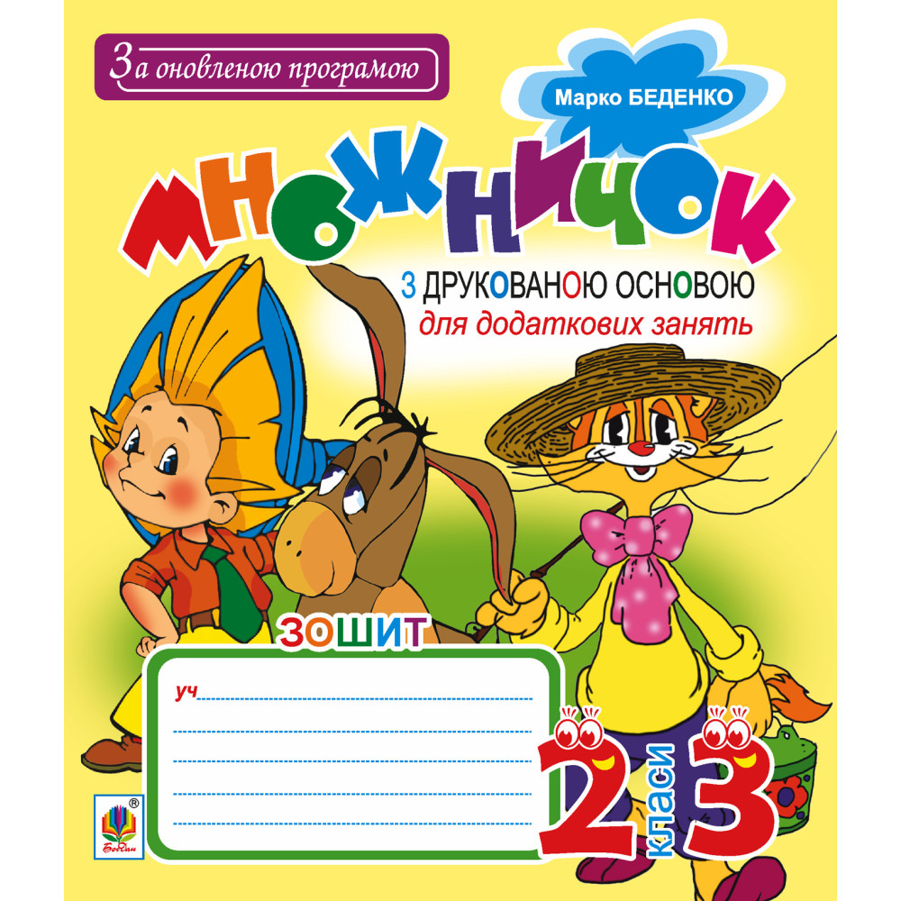 У пропонованому зошиті "Множничок : зошит з друкованою основою : для додаткових занять за програмою 2-го та 3-го кл. За оновленою програмою" вміщено завдання, які допоможуть швидко та ефективно опанувати таблицю множення. Для дітей молодшого шкільного віку.